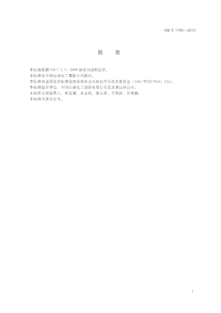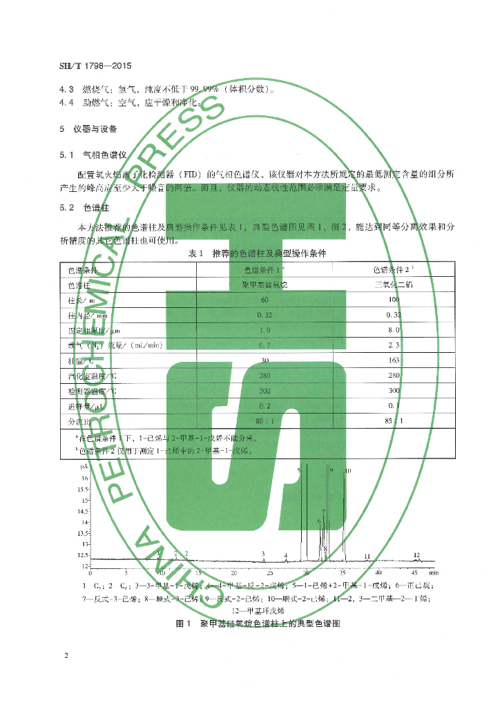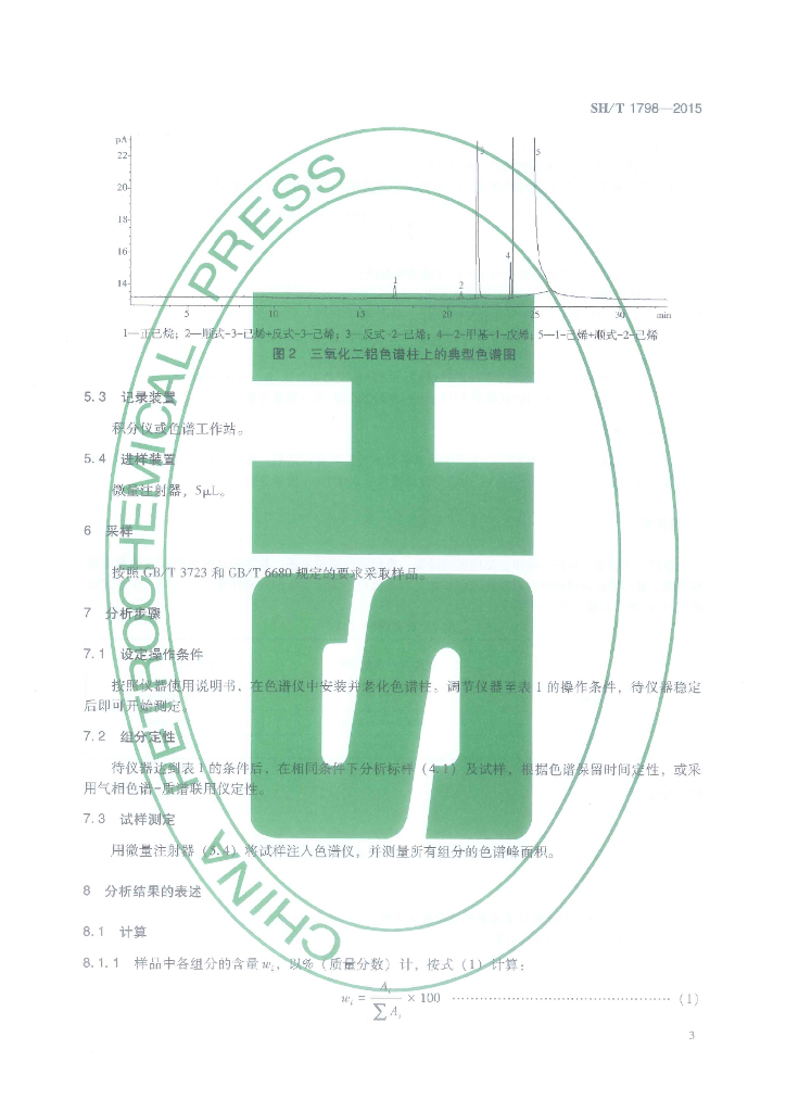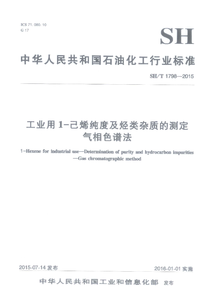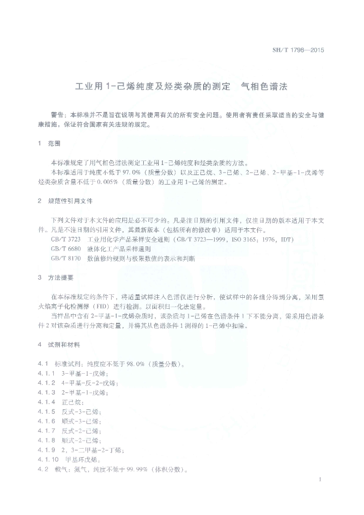 SH/T 1798-2015 工业用1-己烯纯度及烃类杂质的测定 气相色谱法