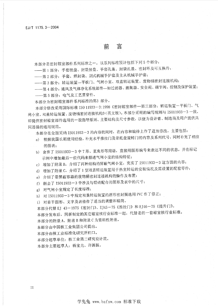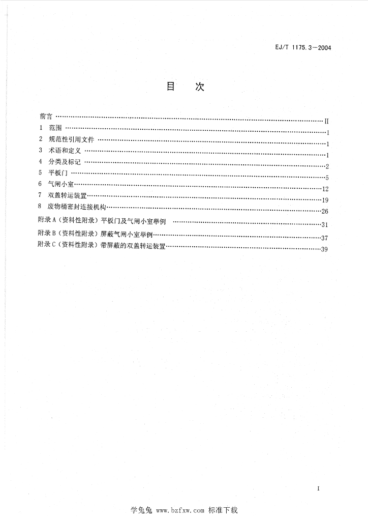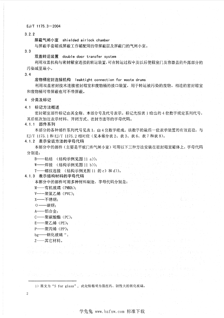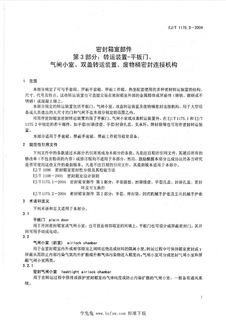 EJ/T 1175.3-2004 密封箱室部件 第3部分:转运装置-平板门、气闸小室、双盖转运装置、废物桶密封连接机构