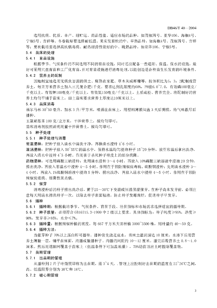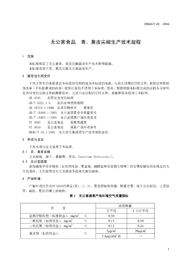 DB46/T 40-2004 无公害食品 青、黄皮尖椒生产技术规程