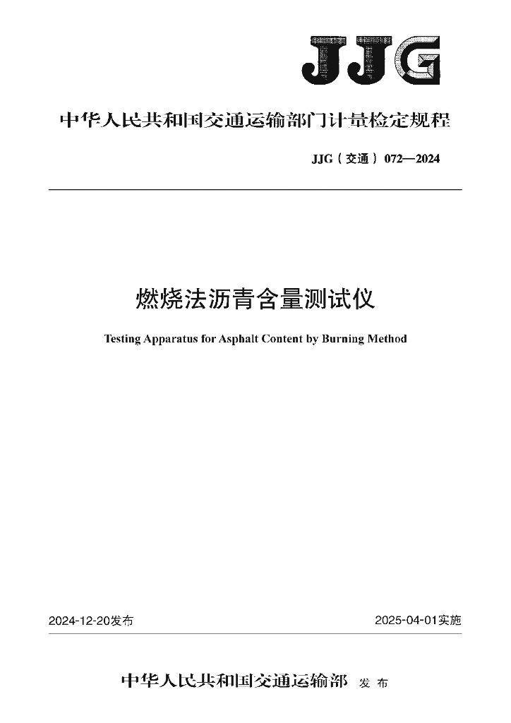 JJG(交通)072-2024燃烧法沥青含量测试仪 检定规程