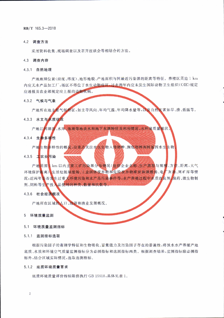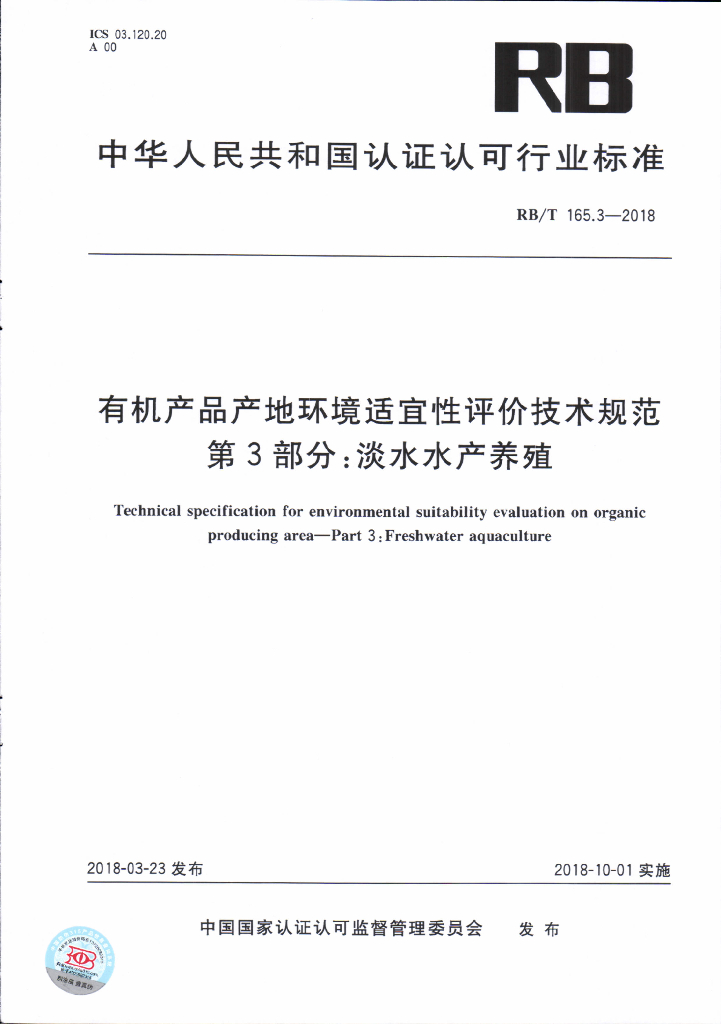 RB/T 165.3-2018 有机产品产地环境适宜性评价技术规范 第3部分:淡水水产养殖