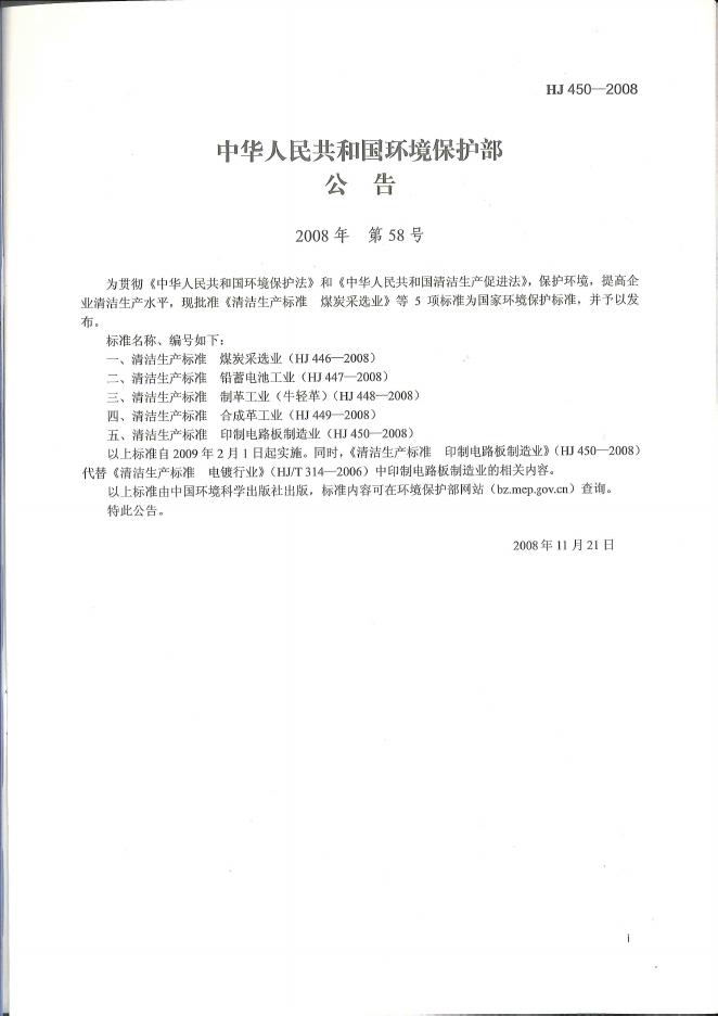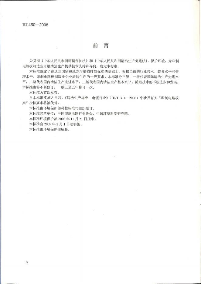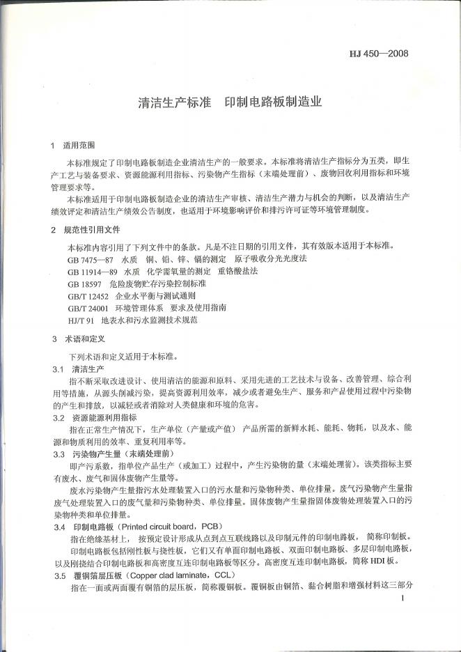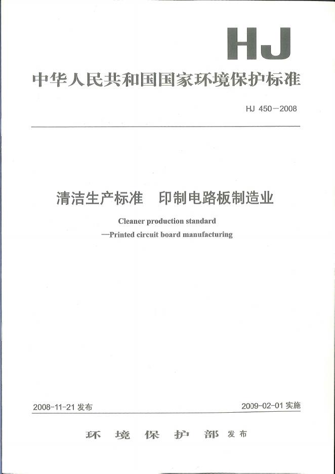 HJ 450-2008 清洁生产标准 印制电路板制造业