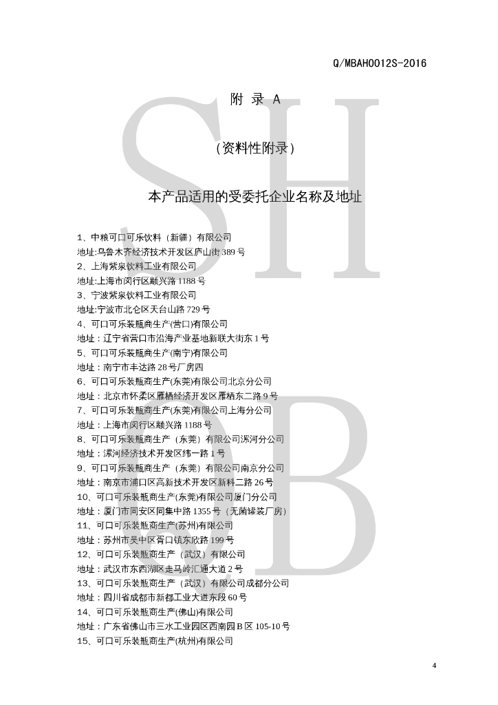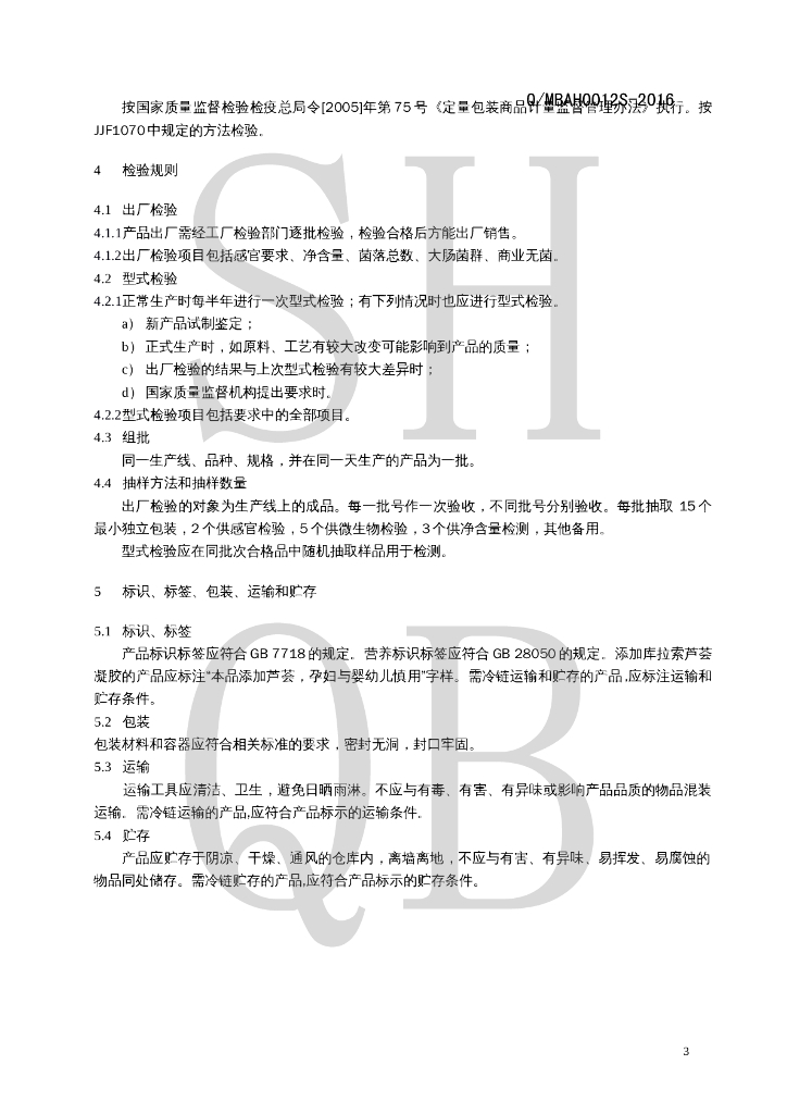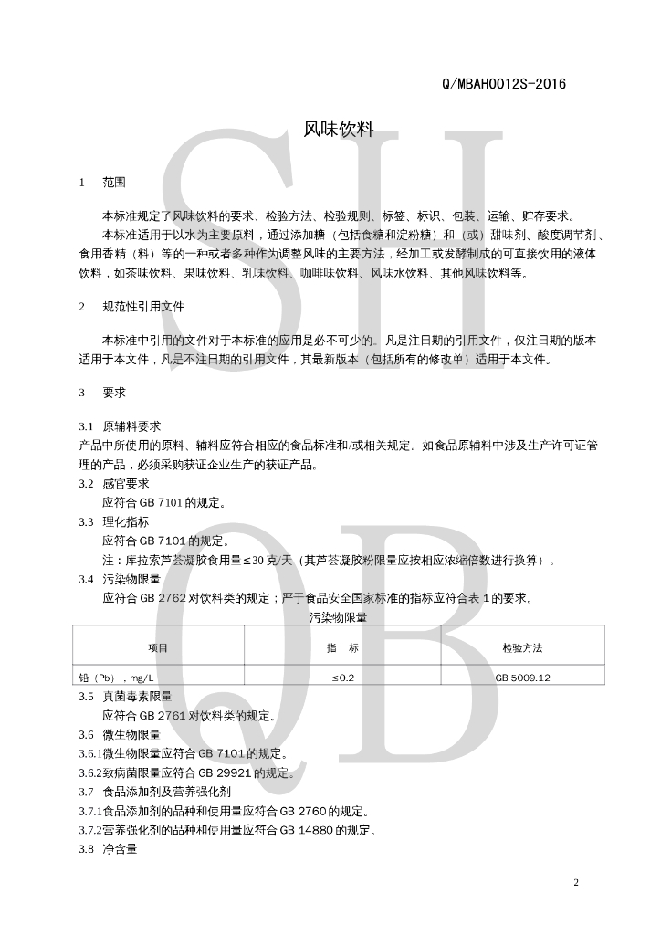 Q/MBAH 0012S-2016 风味饮料