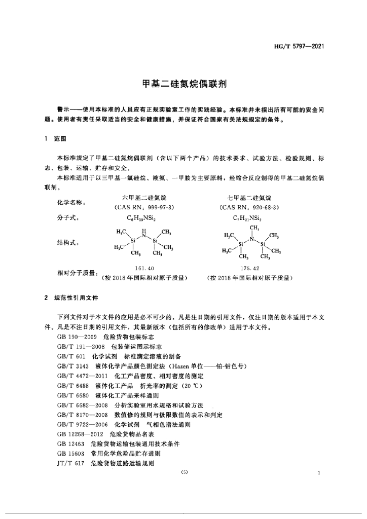 HG/T 5797-2021 甲基二硅氮烷偶联剂