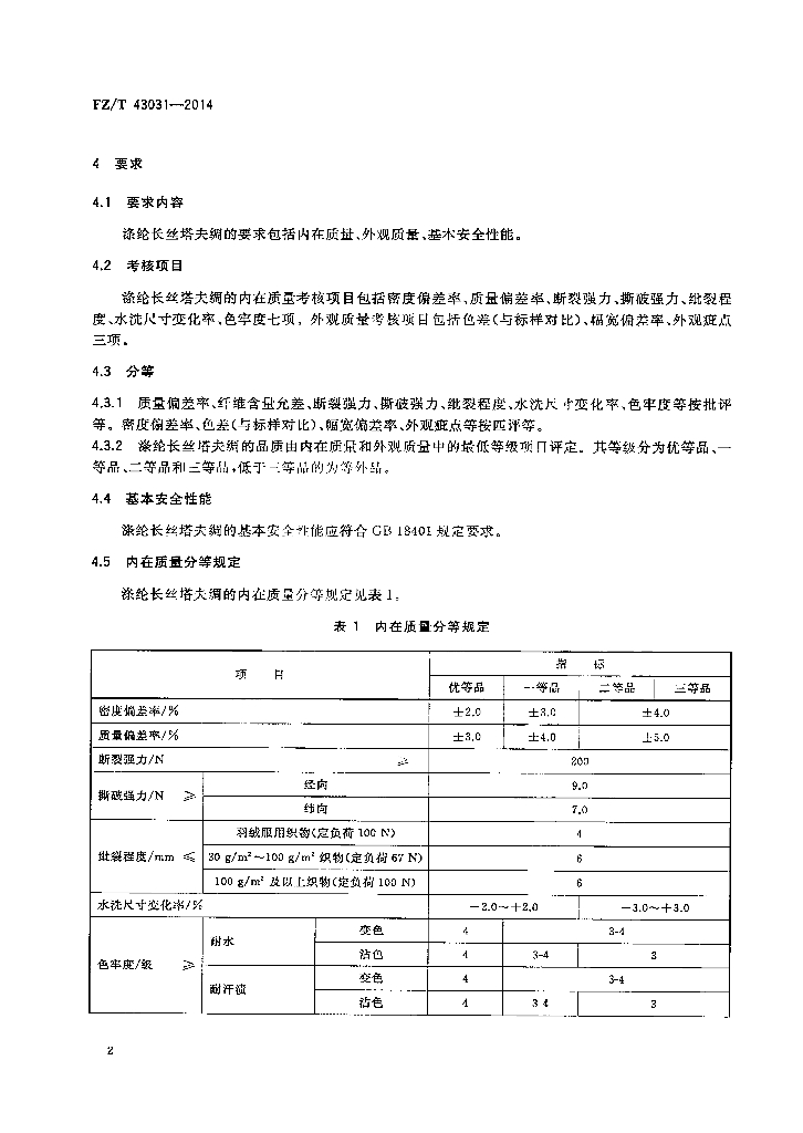 FZ/T 43031-2014 涤纶长丝塔夫绸