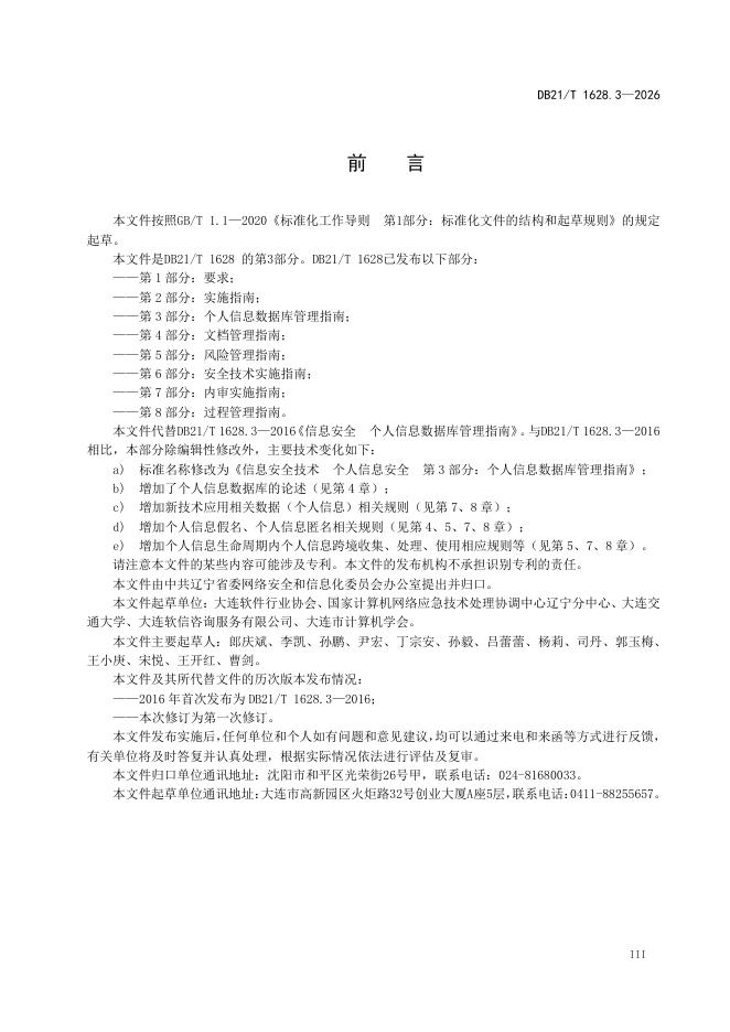 DB21/T 1628.3-2026 信息安全技术 个人信息安全 第3部分:个人信息数据库管理指南