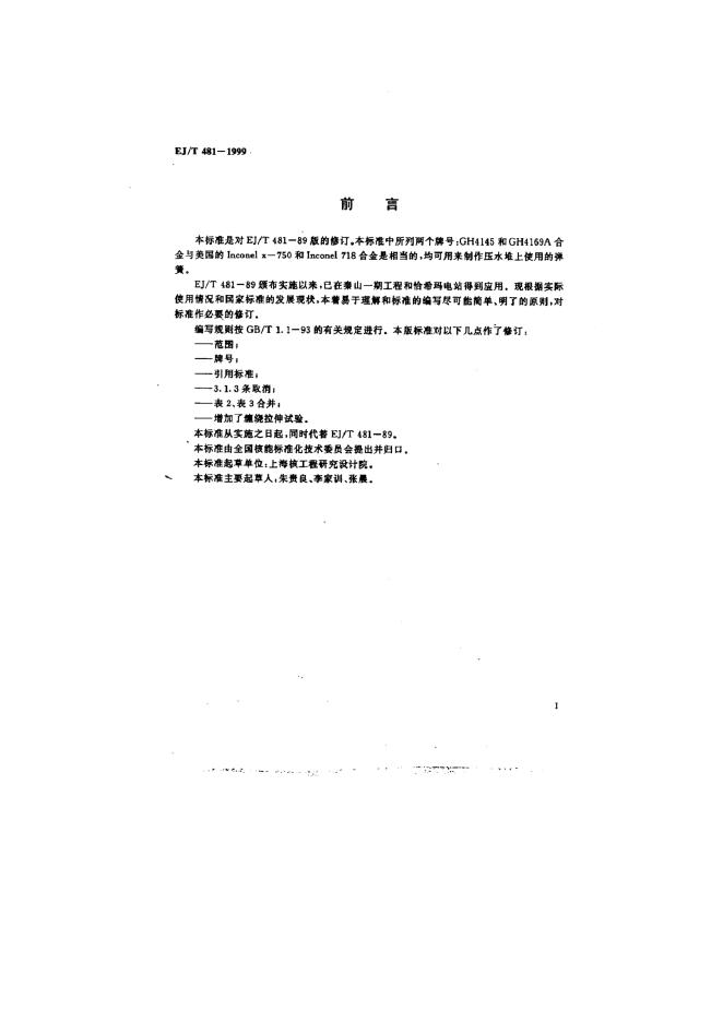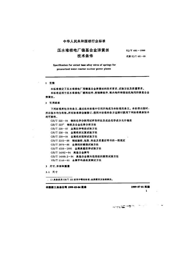 EJ/T 481-1999 压水堆核电厂镍基合金弹簧丝技术条件