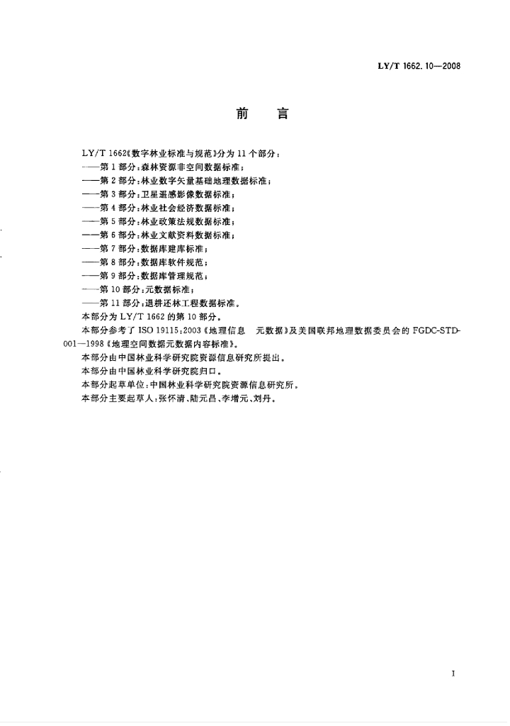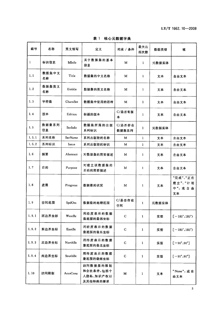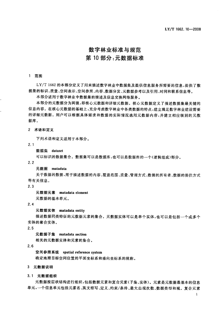 LY/T 1662.10-2008 数字林业标准与规范 第10部分:元数据标准