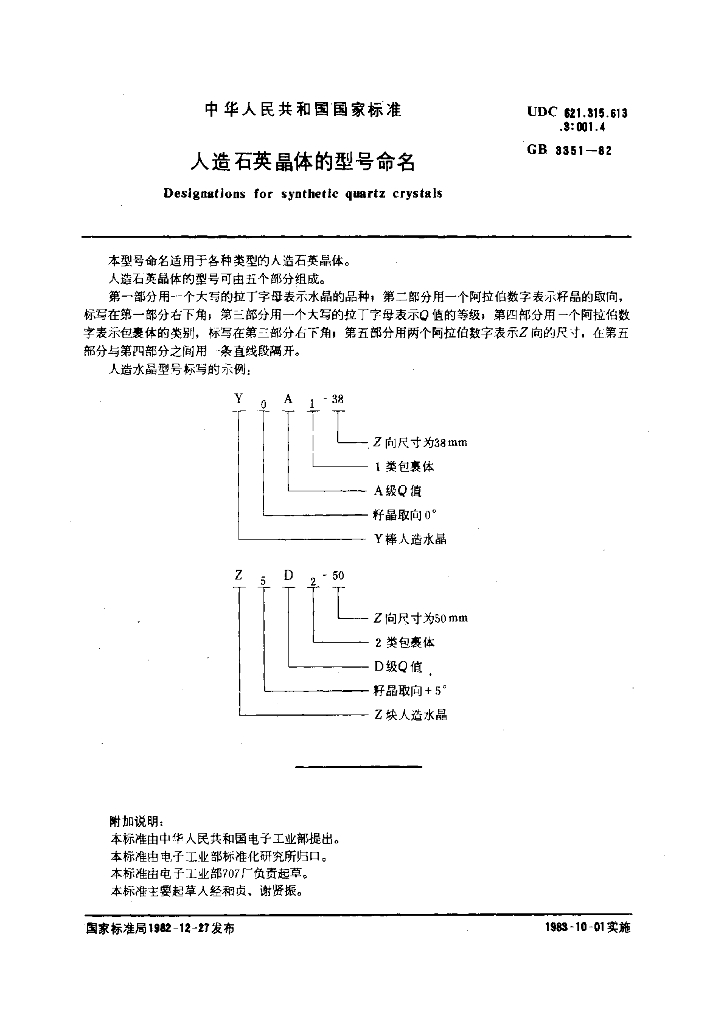 GB/T 3351-1982 人造石英晶体的型号命名