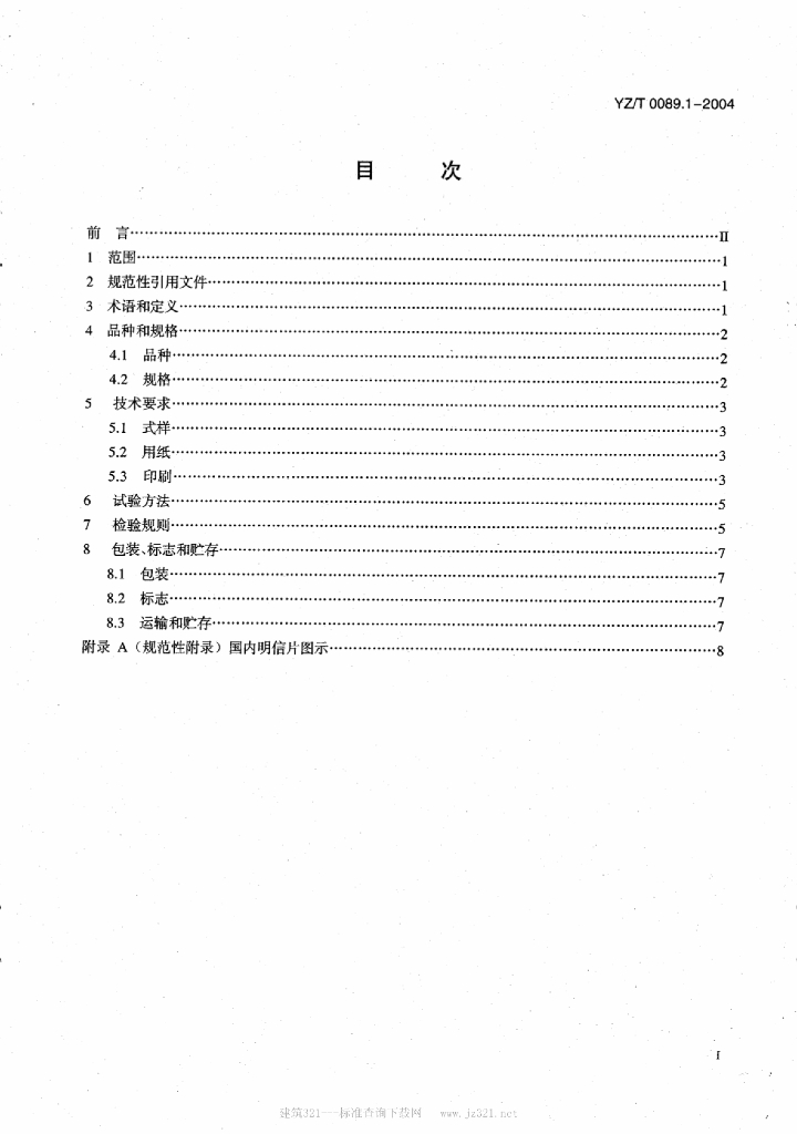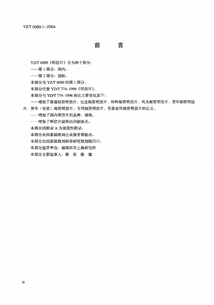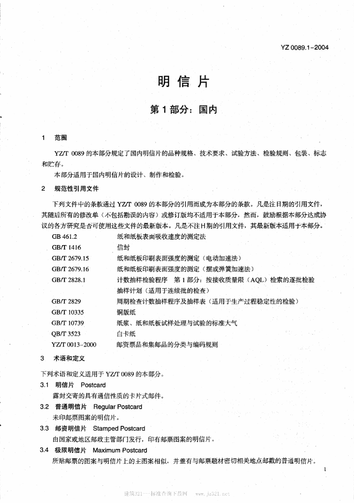 YZ/T 0089.1-2004 明信片 第1部分:国内