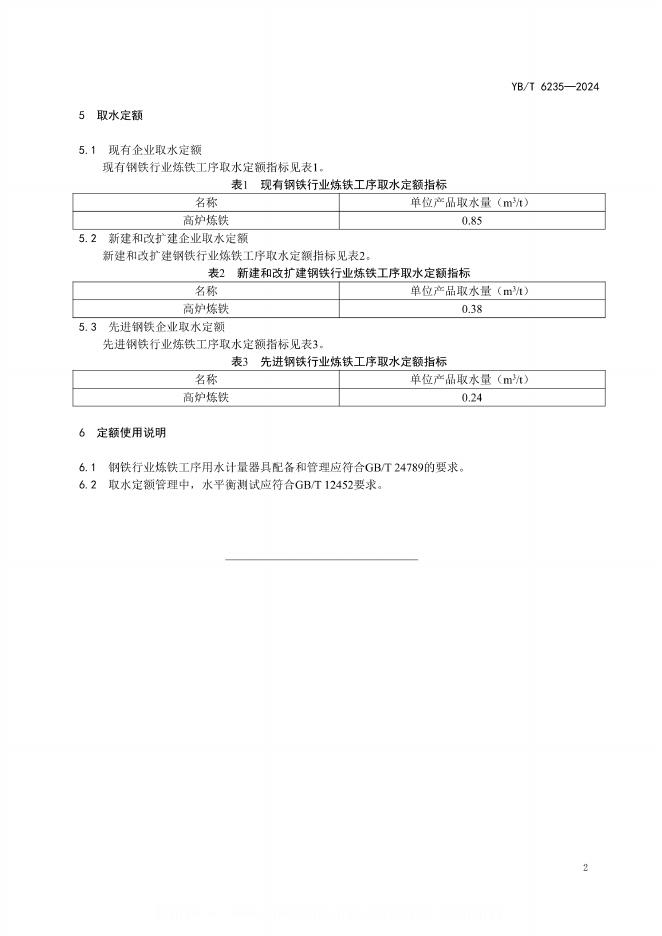 YB/T 6235-2024 取水定额 钢铁行业炼铁