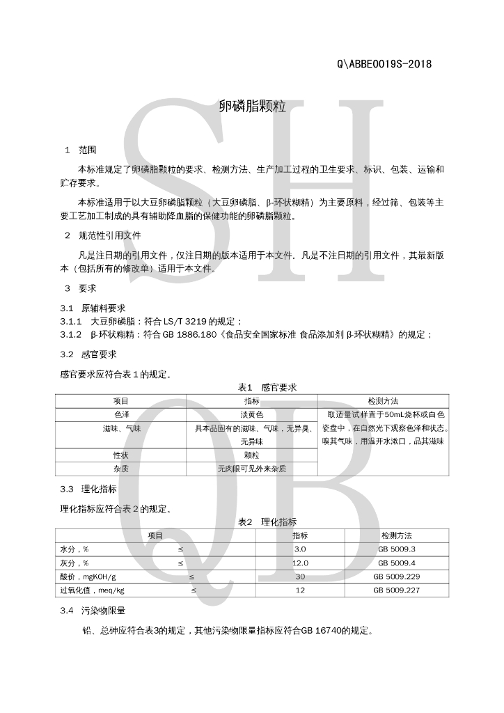 Q/ABBE 0019S-2018 卵磷脂颗粒