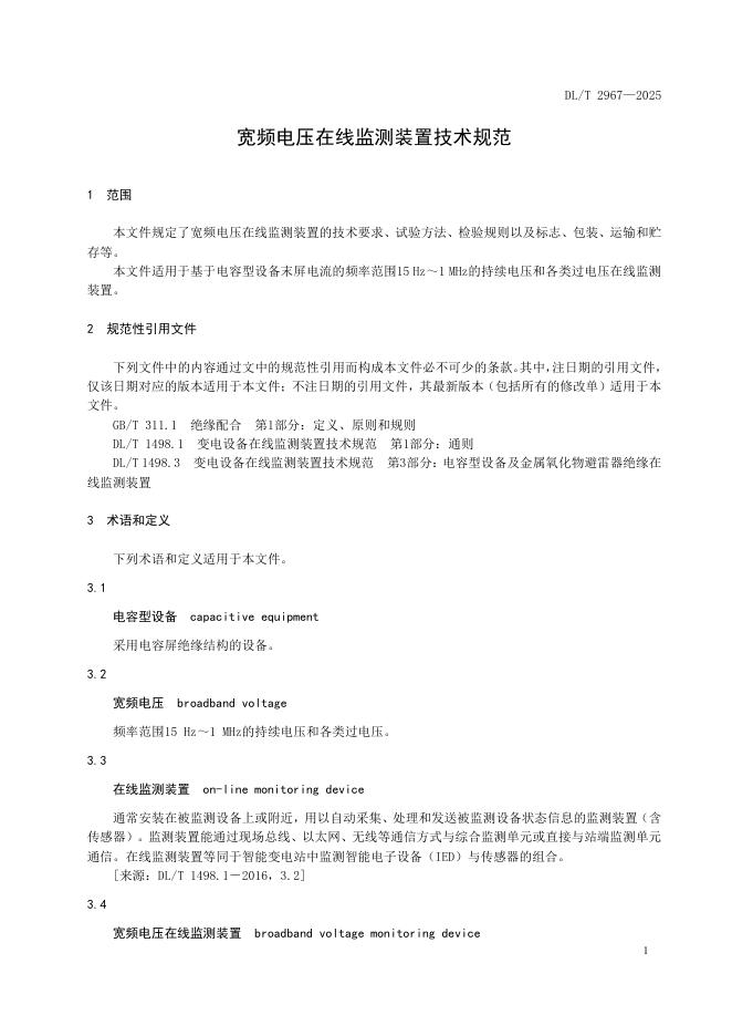 DL/T 2967-2025 宽频电压在线监测装置技术规范