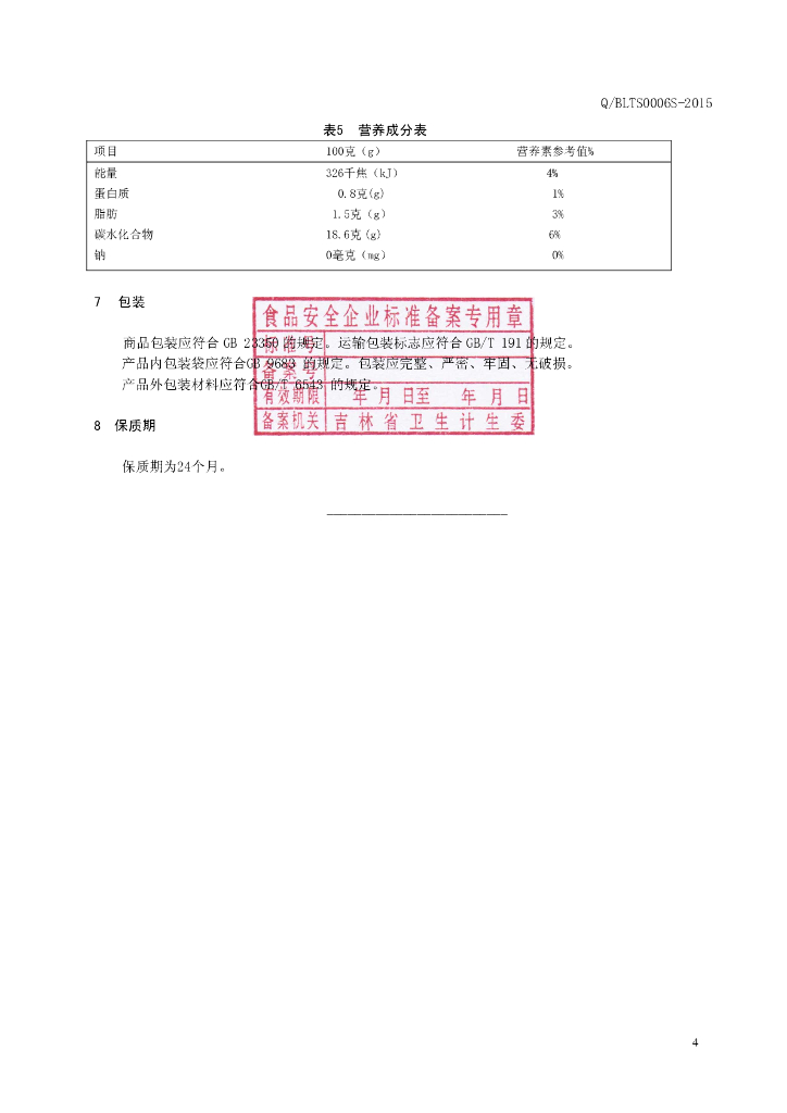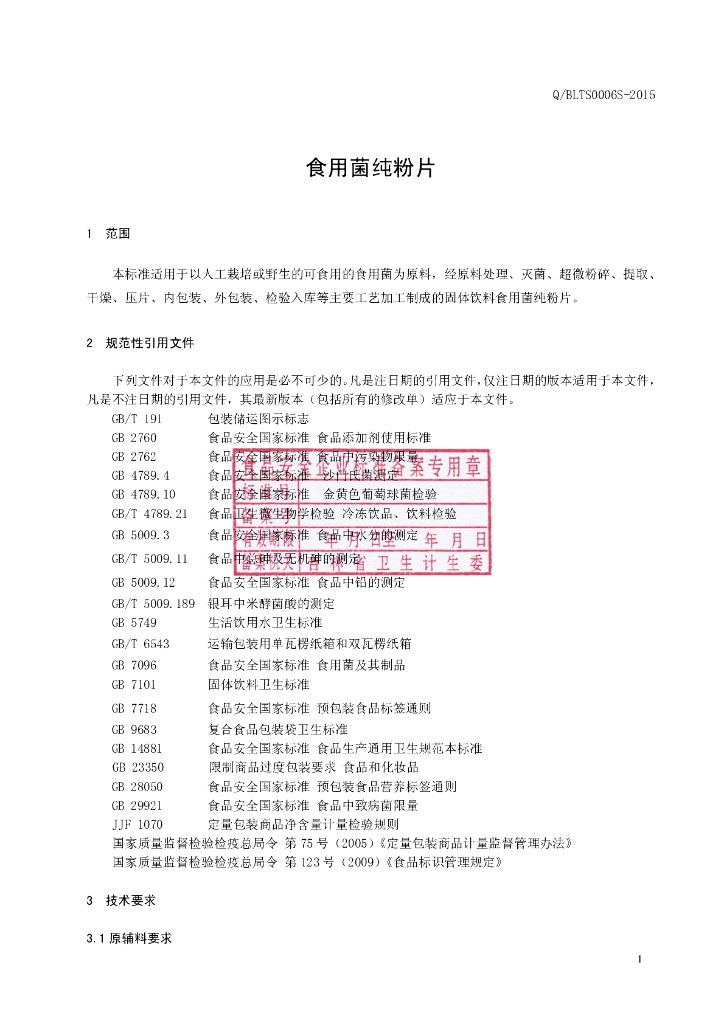 Q/BLTS 0005S-2015 通化佰龄天寿生物科技有限公司 食用菌纯粉片