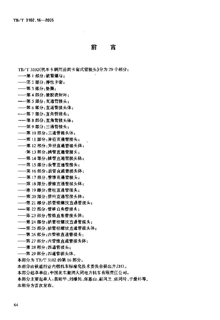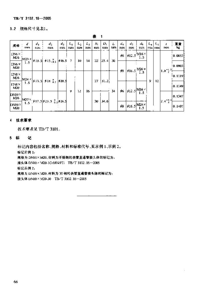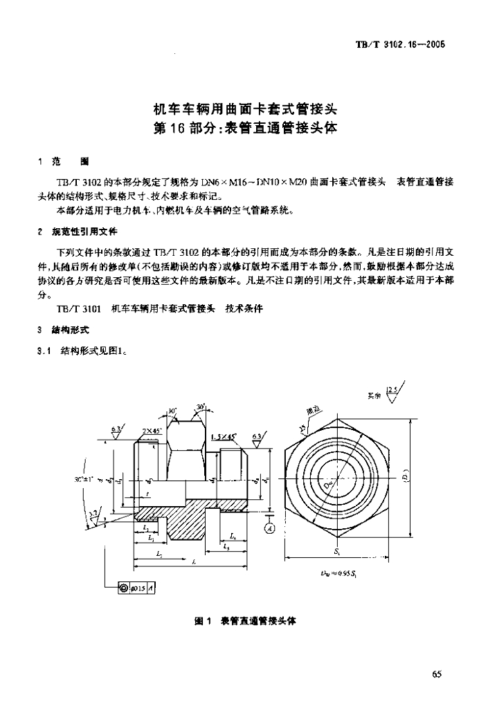 TB/T 3102.16-2005 机车车辆用曲面卡套式管接头 第16部分:表管直通管接头体