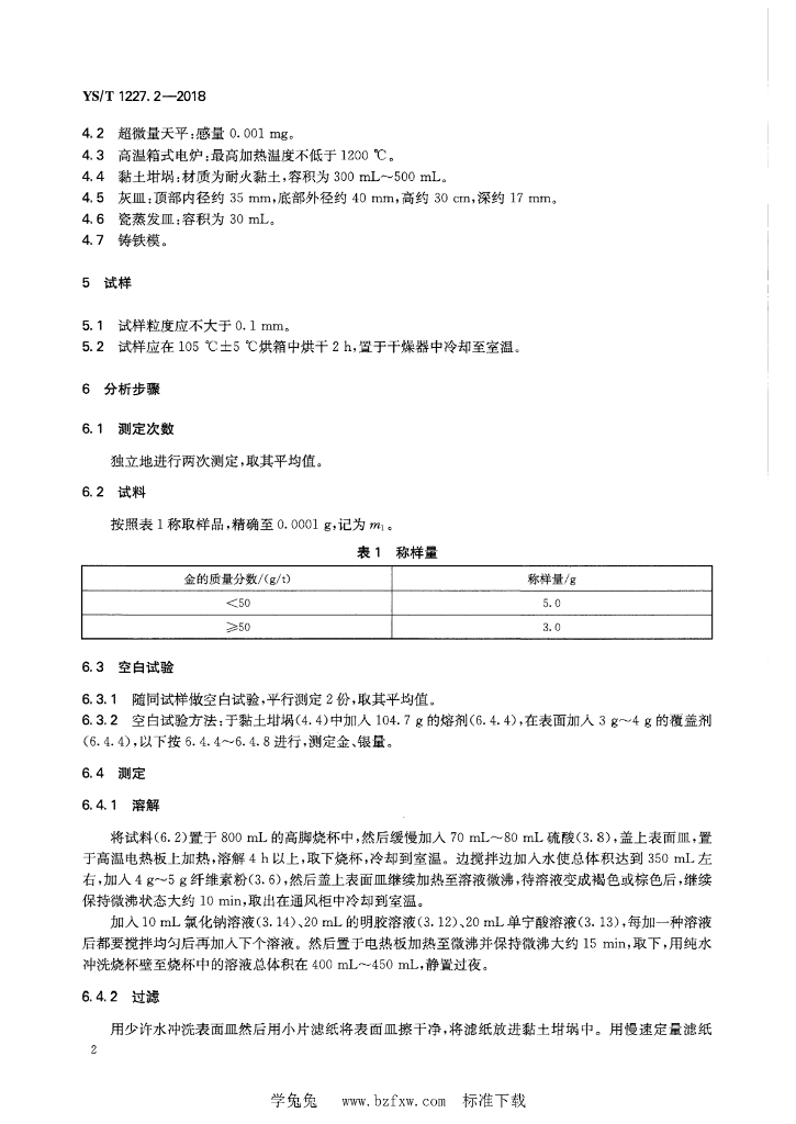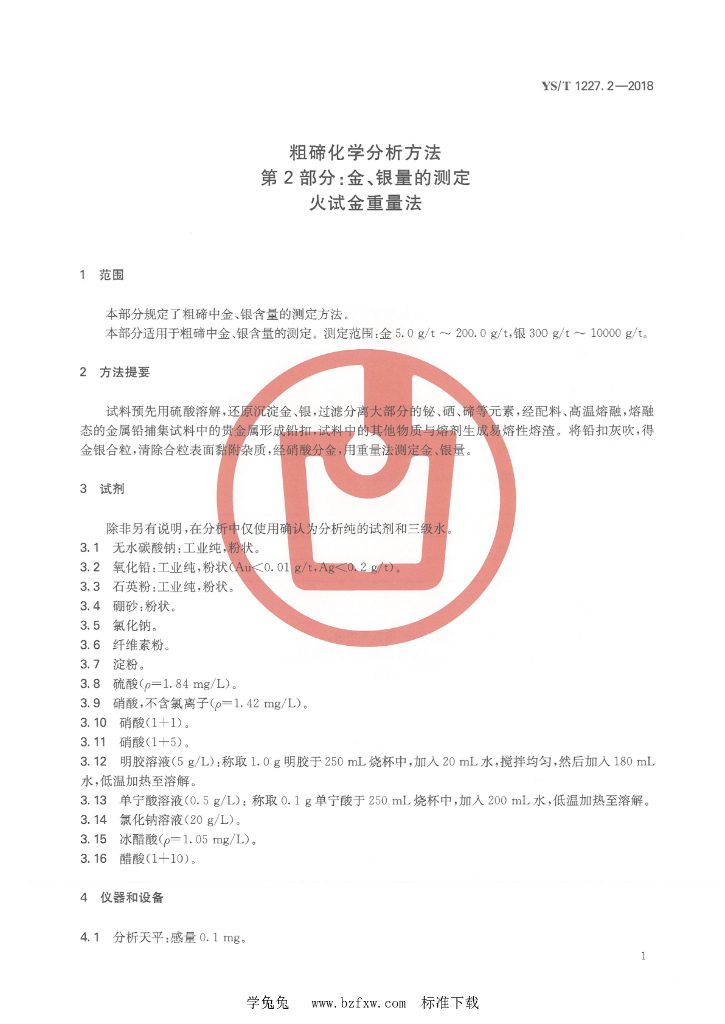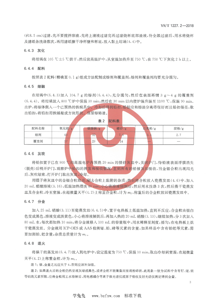 YS/T 1227.2-2018 粗碲化学分析方法 第2部分:金、银量的测定 火试金重量法