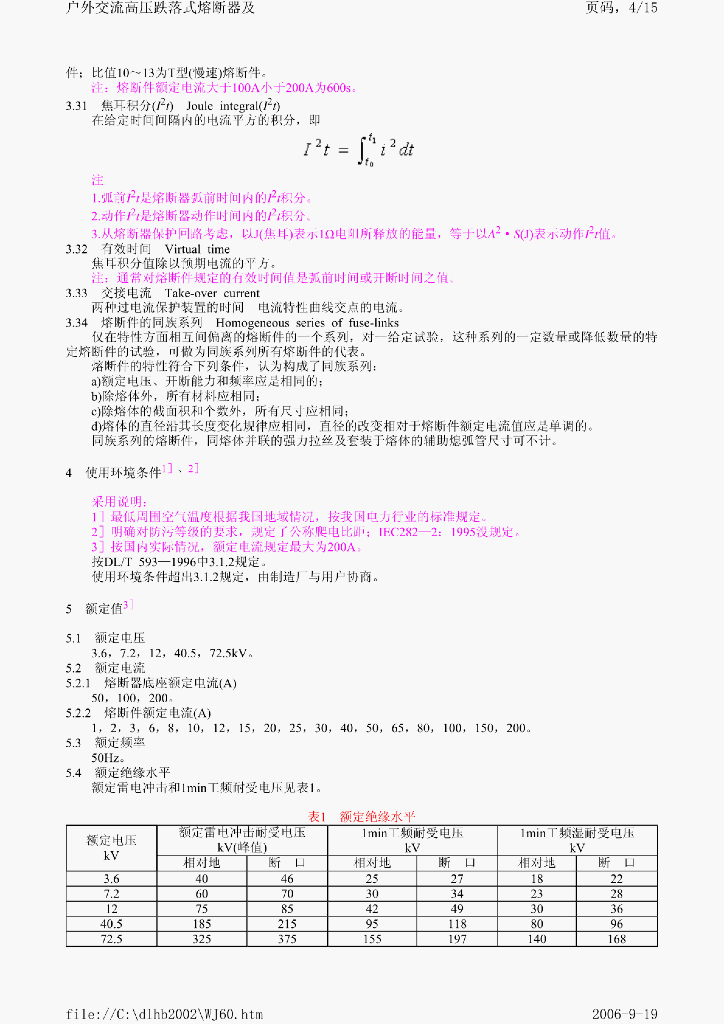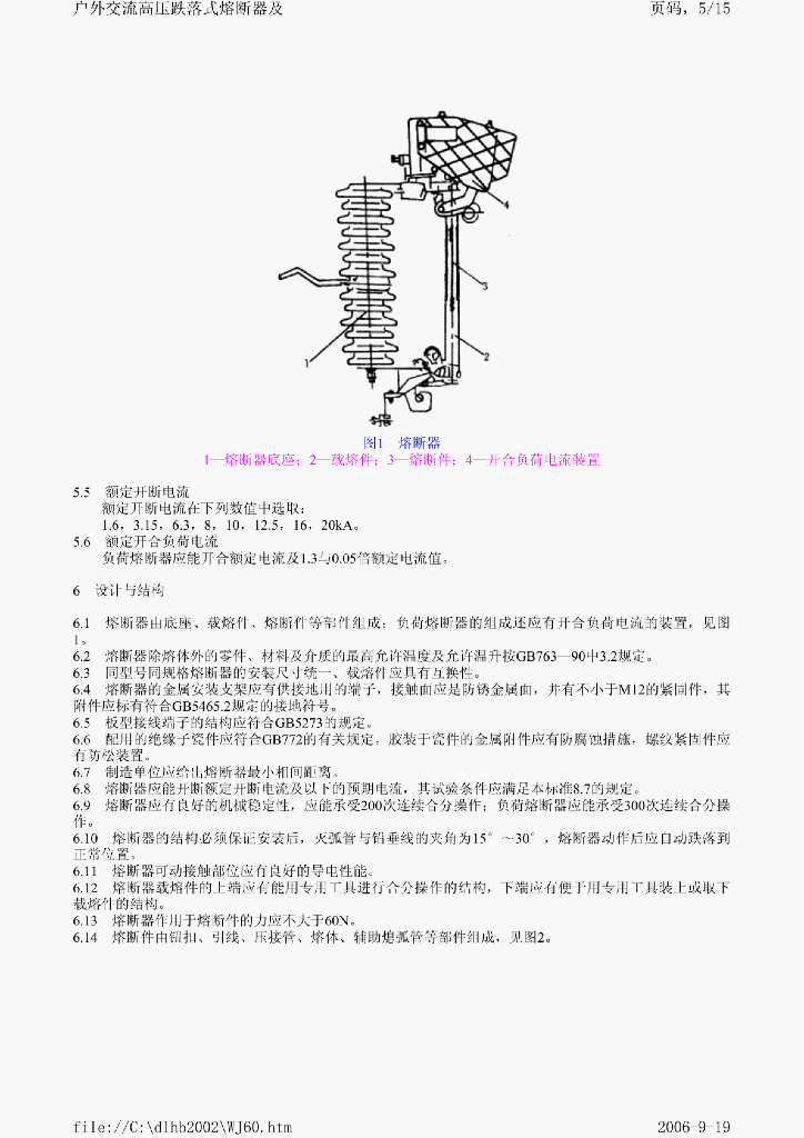 DL/T 640-1997 户外交流高压跌落式熔断器及 熔断件订货技术条件
