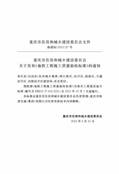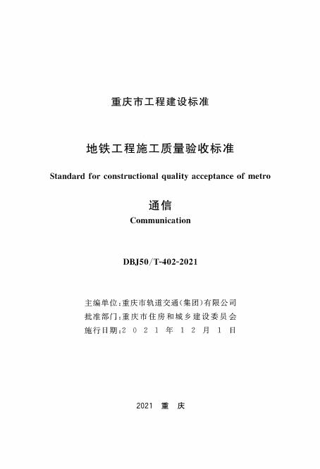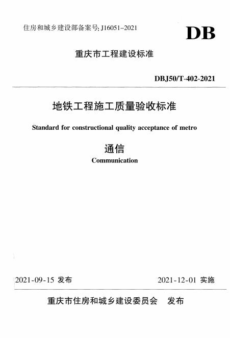 DBJ50/T 402-2021 地铁工程施工质量验收标准 通信