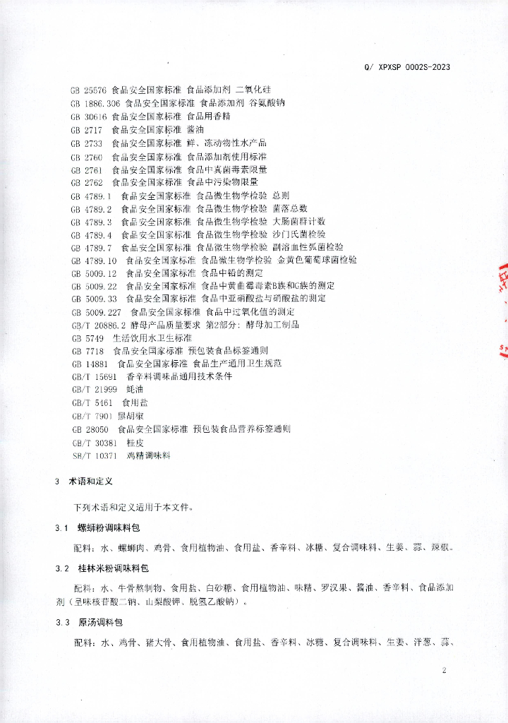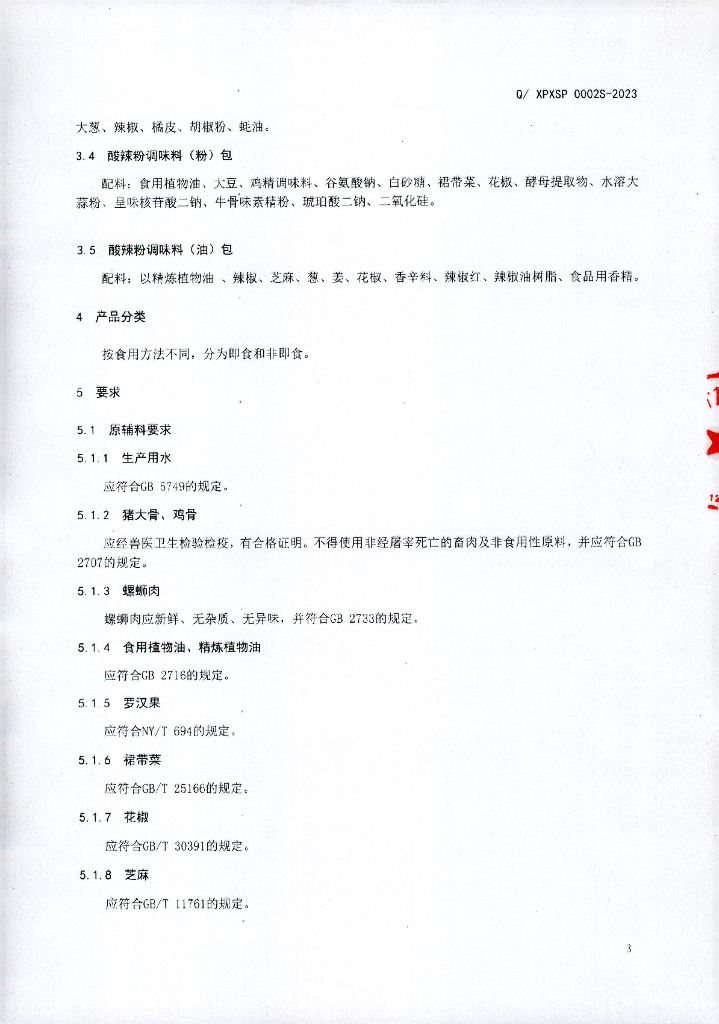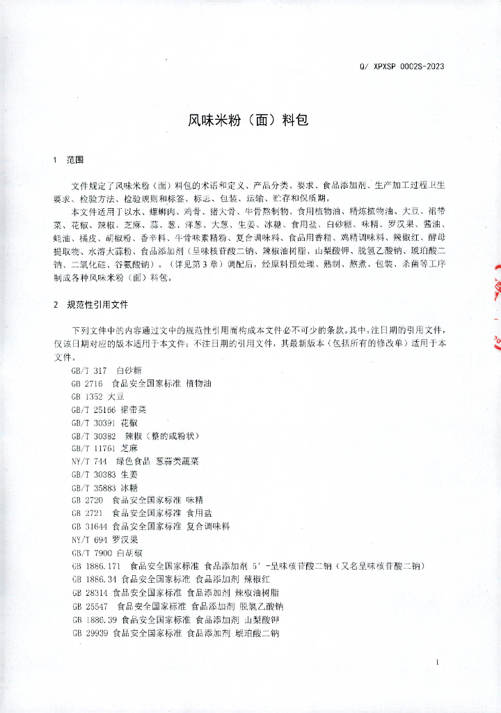Q/XPXSP 0002S-2023 风味米粉(面)料包