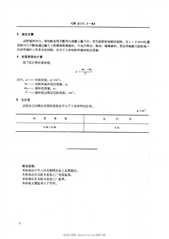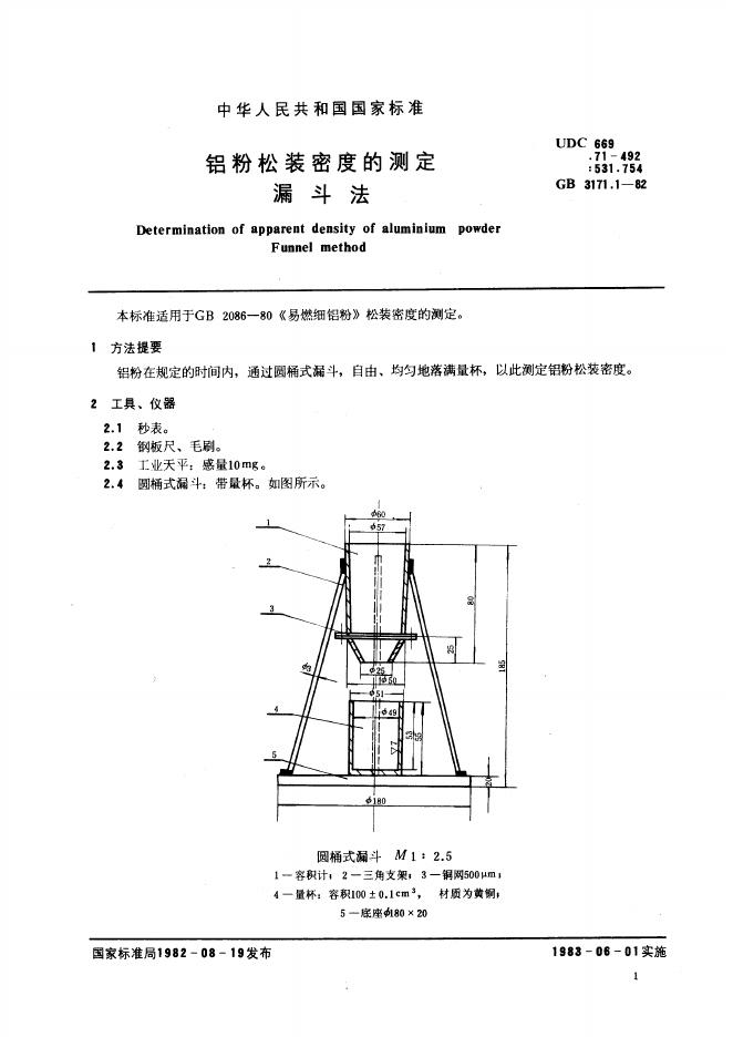 GB/T 3171.1-1982 铝粉松装密度的测定 漏斗法