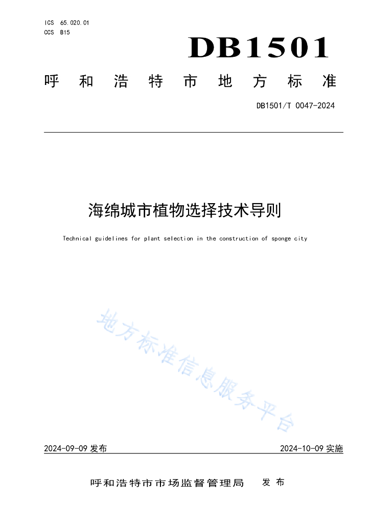 DB1501/T 0047-2024 海绵城市植物选择技术导则