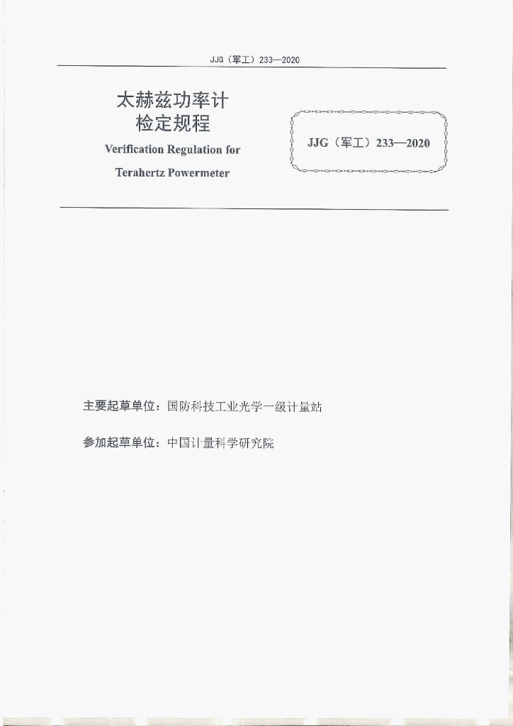 JJG(军工)233-2020 太赫兹功率计检定规程