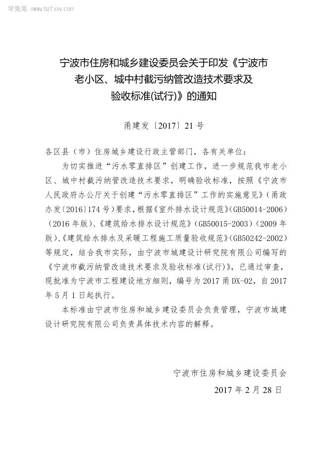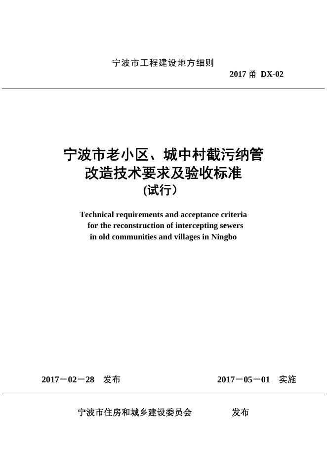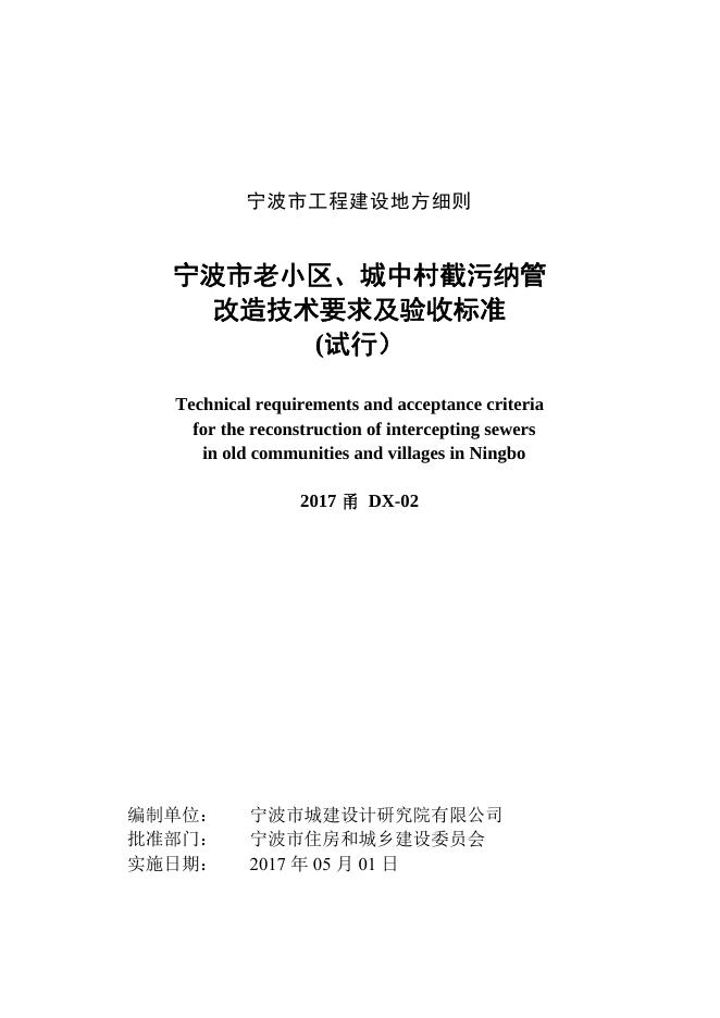 2017甬DX-02 宁波老小区、城中村截污纳管改造技术要求及验收标准