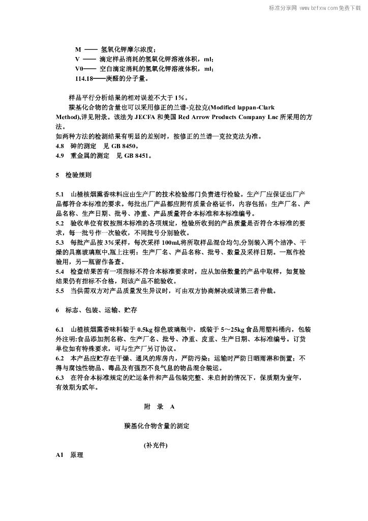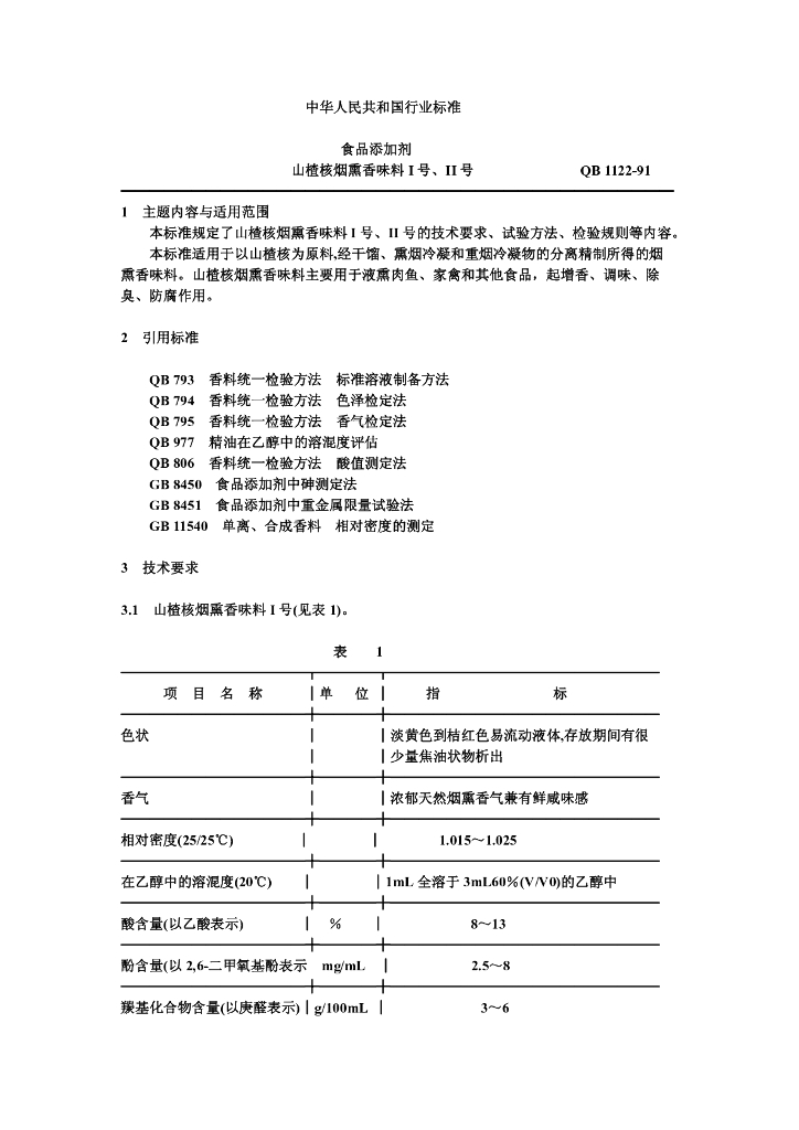 QB 1122-1991 食品添加剂山楂核烟熏香味料I号、II号