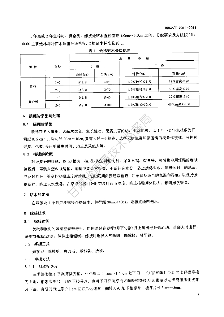 DB62/T 2011-2011 灰楸、楸树嫁接育苗技术规程