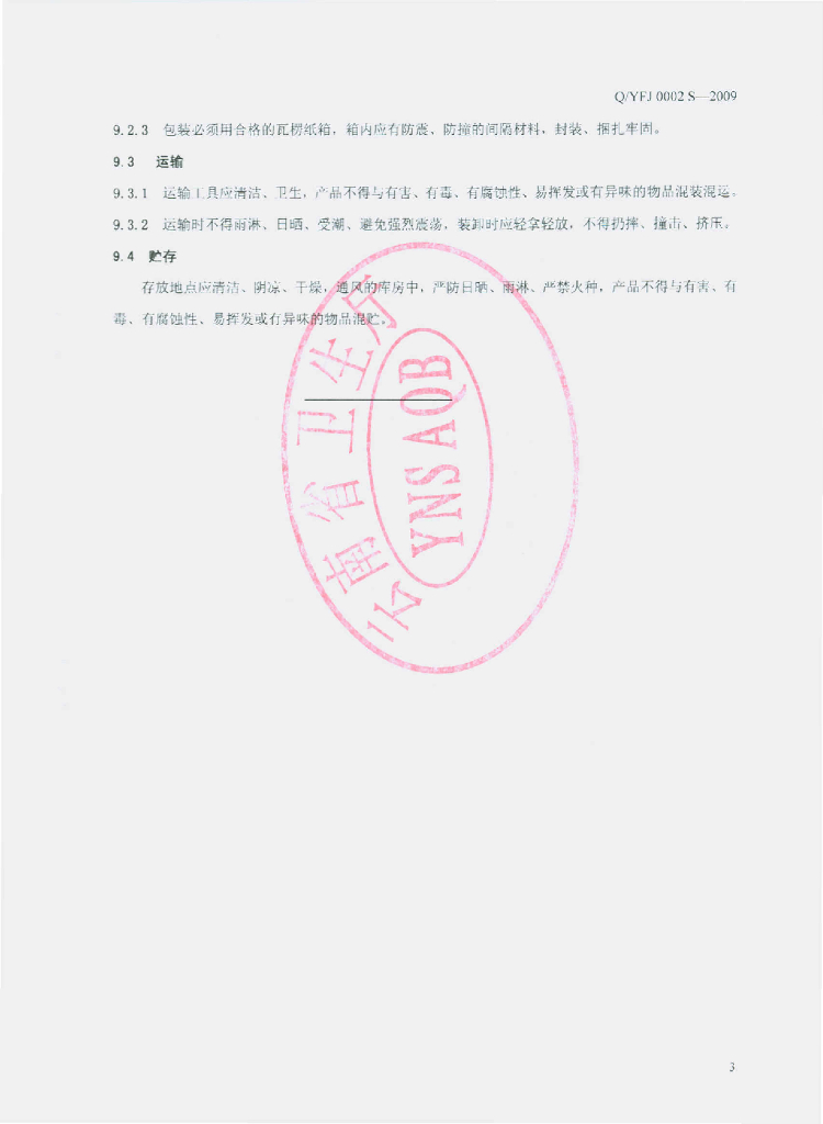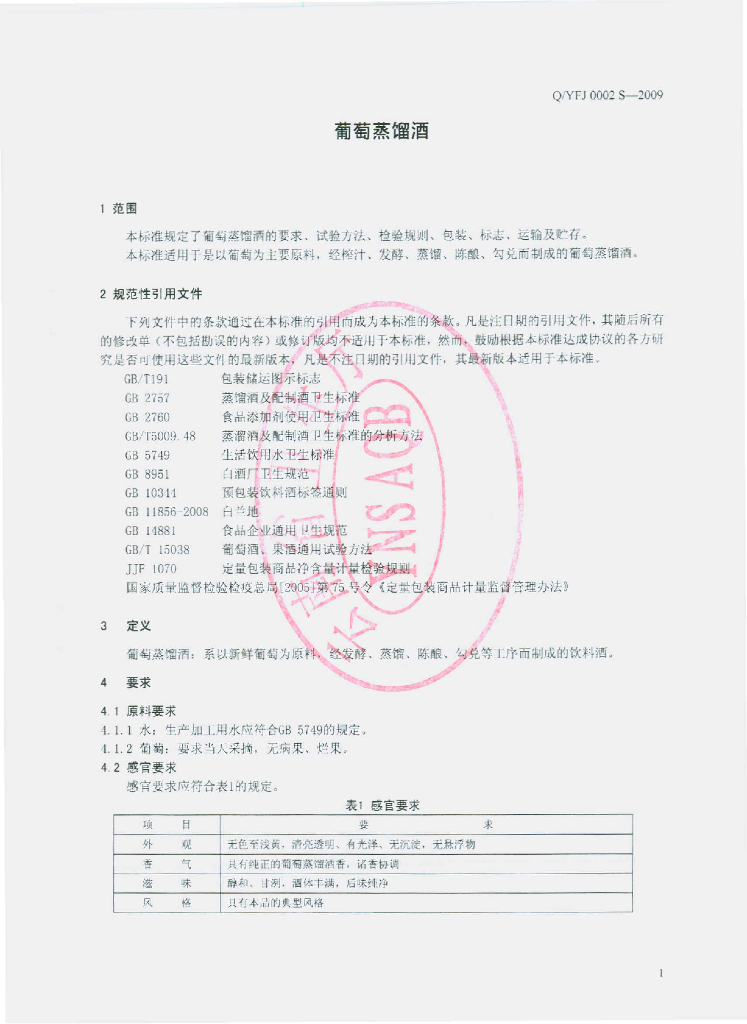 Q/YFJ 0002S-2009 葡萄蒸馏酒