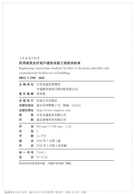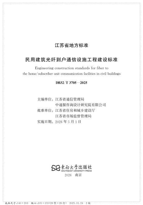 DB32/T 3705-2025 民用建筑光纤到户通信设施工程建设标准