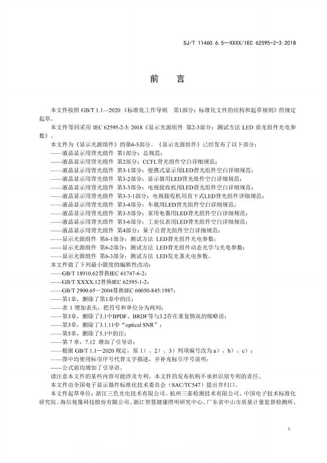 SJ/T 11460.6.5-2023/IEC 62595-2-3:2018 显示光源组件 第6-5部分:测试方法 LED 前光组件光电参数