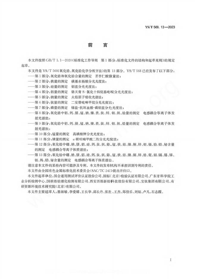 国合通用测试评价认证股份公司、国标(北京)检验认证有限公司、广东省科学院工业分析检测中心、国核错铪理化检测有限公司、西安西部新锆科技股份有限公司、宝钛集团有限公司、有研资源环境技术研究院(北京)有限公司