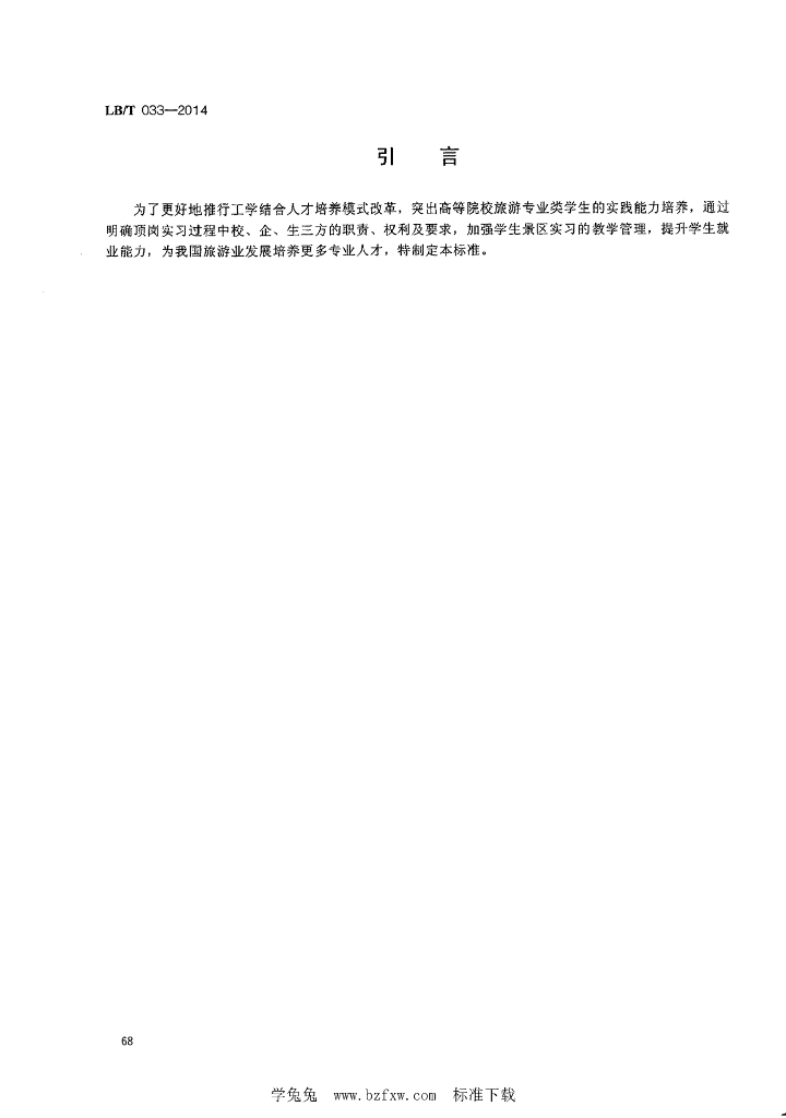 LB/T 033-2014 旅游类专业学生景区实习规范