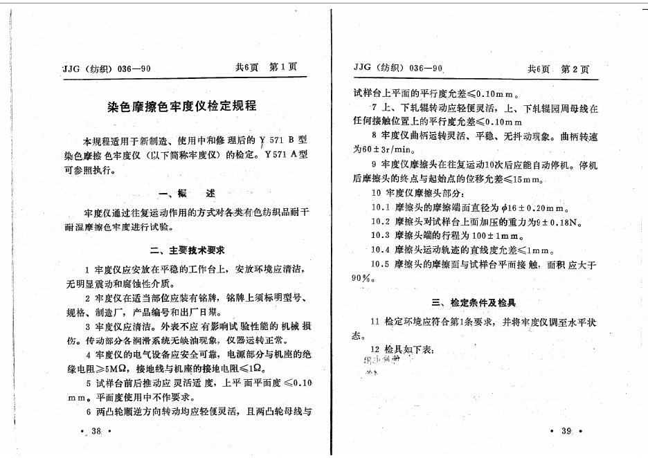 JJG(纺织)036-1990 染色摩擦色牢度仪计量检定规程