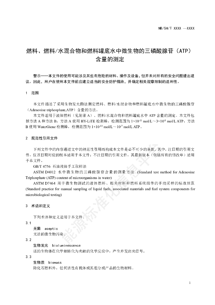 NB/SH/T 6053-2022 燃料、燃料/水混合物和燃料罐底水中微生物的三磷酸腺苷(ATP)含量的测定
