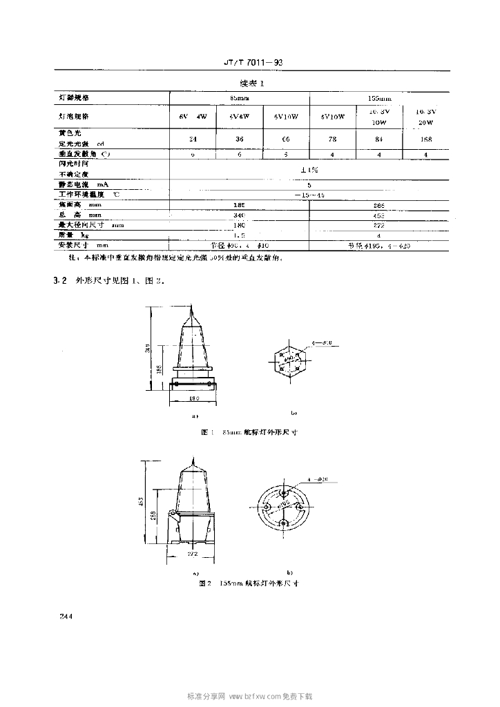 JT 7011-1993 85mm、155mm塑料透镜航标灯