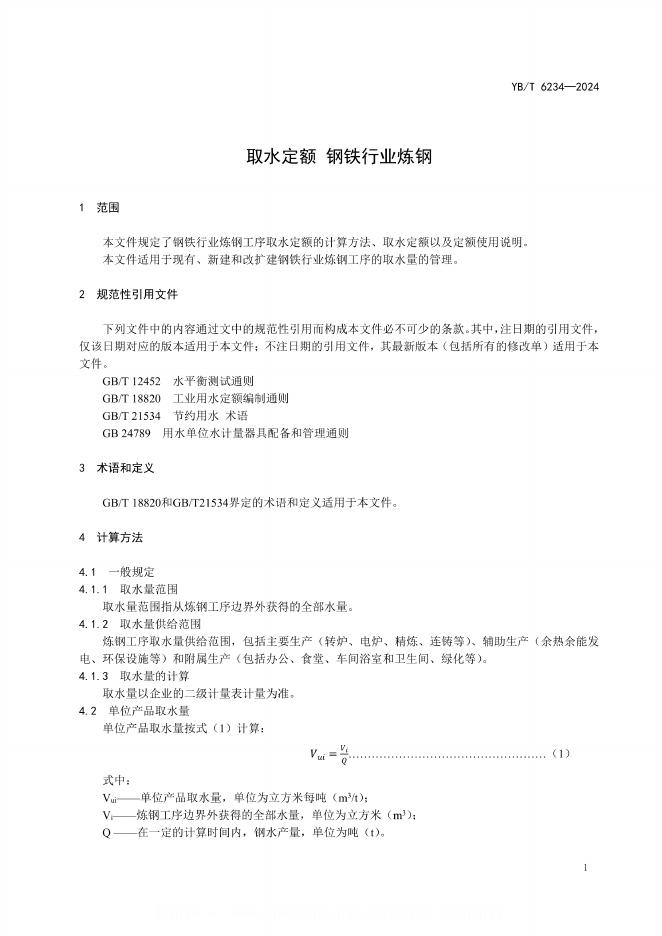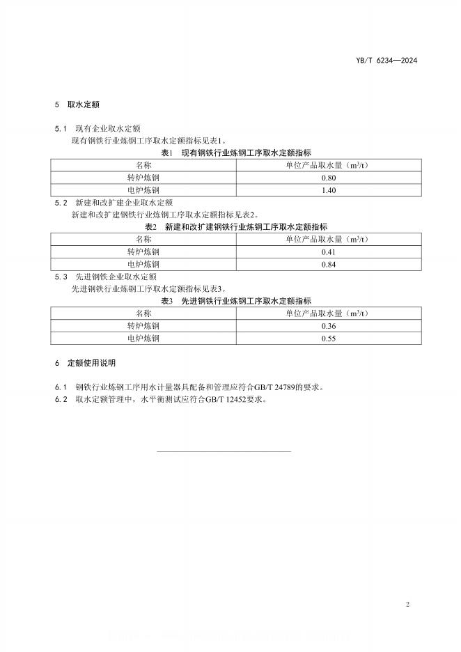YB/T 6234-2024 取水定额 钢铁行业炼钢