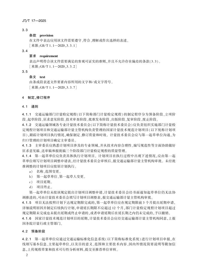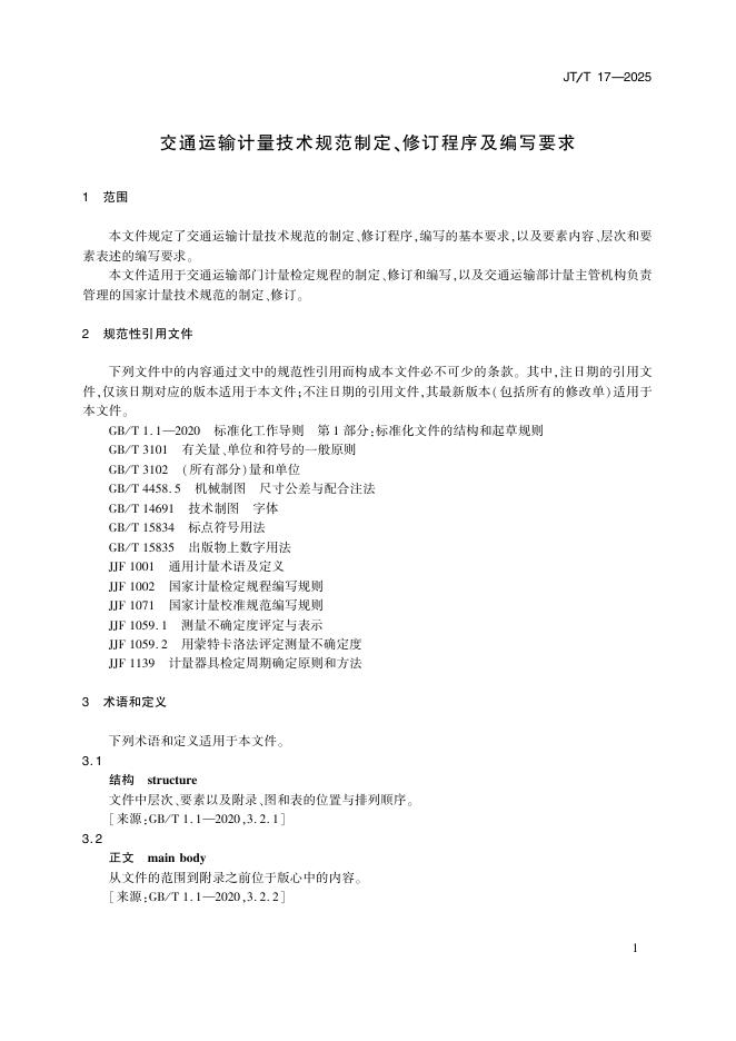 JT/T 17-2025 交通运输计量技术规范制定、修订程序及编写要求