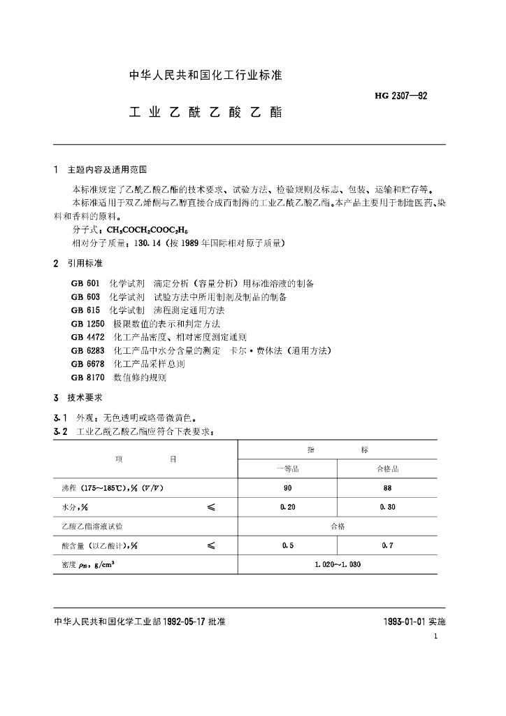 HG 2307-1992 工业乙酰乙酸乙酯
