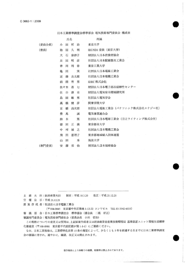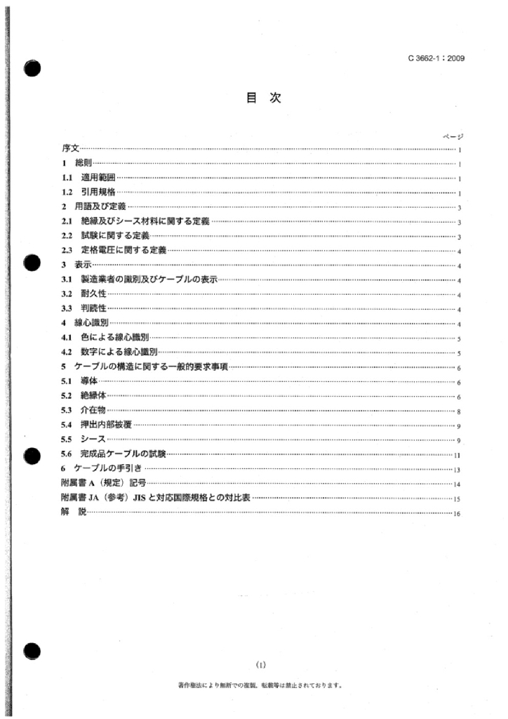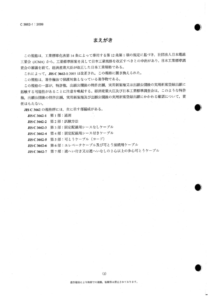 JIS C3662-1:2009 额定电压450/750V及以下聚氯乙烯绝缘电缆 第1部分 一般要求