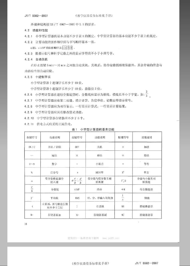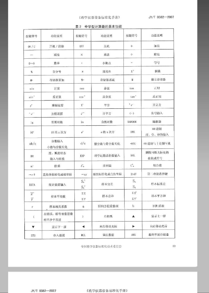 JY/T 0382-2007 学生计算器