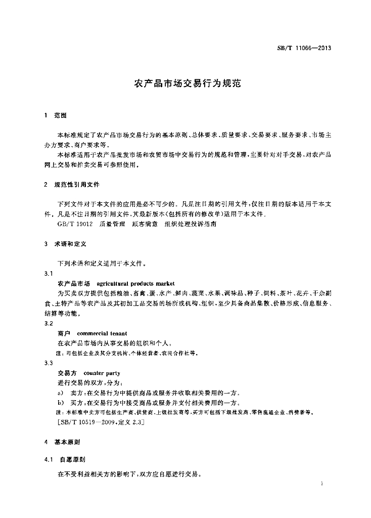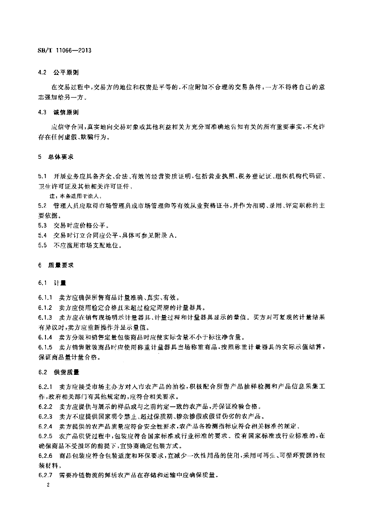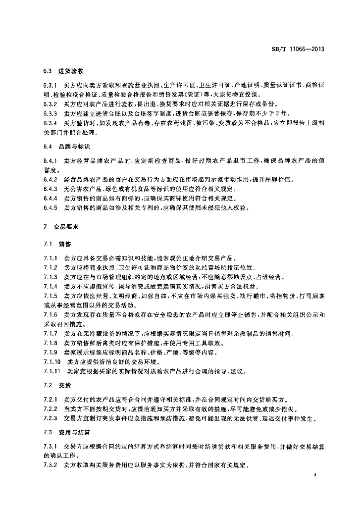 SB/T 11066-2013 农产品市场交易行为规范