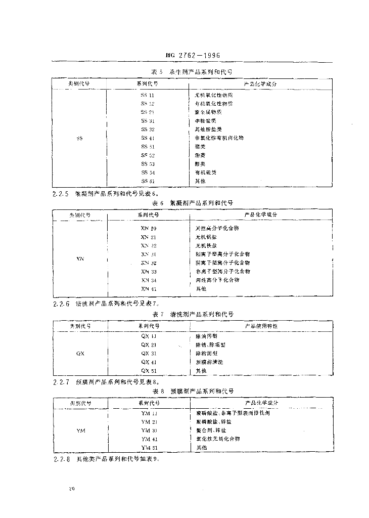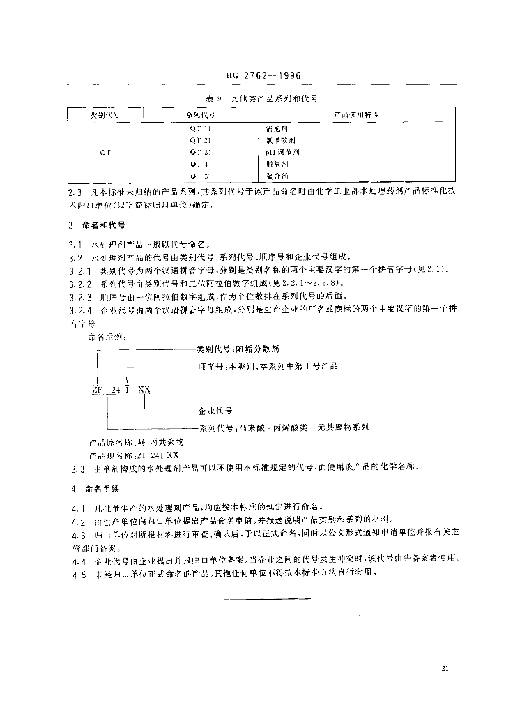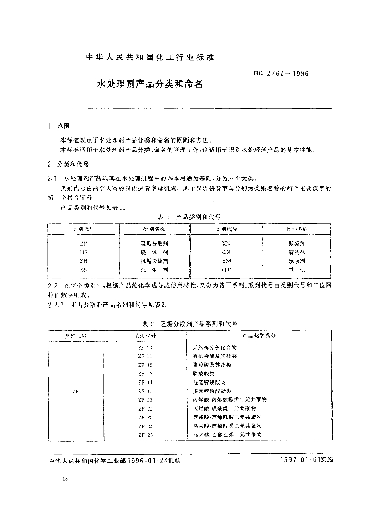 HG 2762-1996 水处理剂产品分类和命名