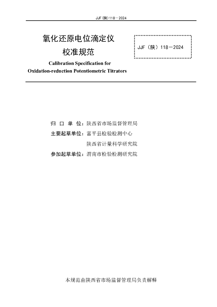 JJF(陕)118-2024 氧化还原电位滴定仪校准规范