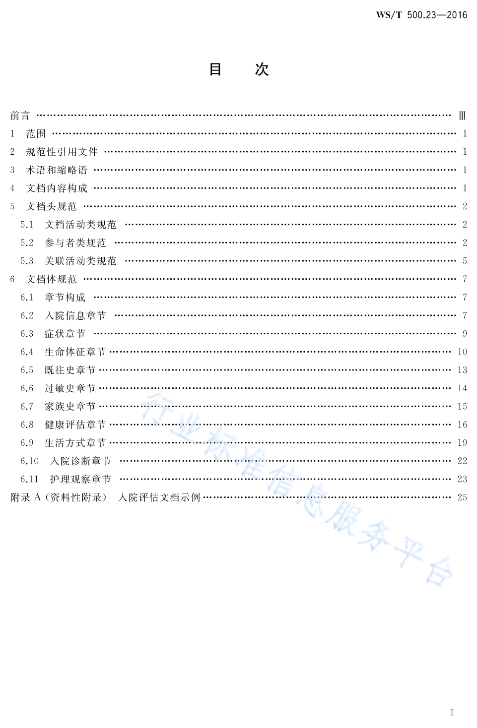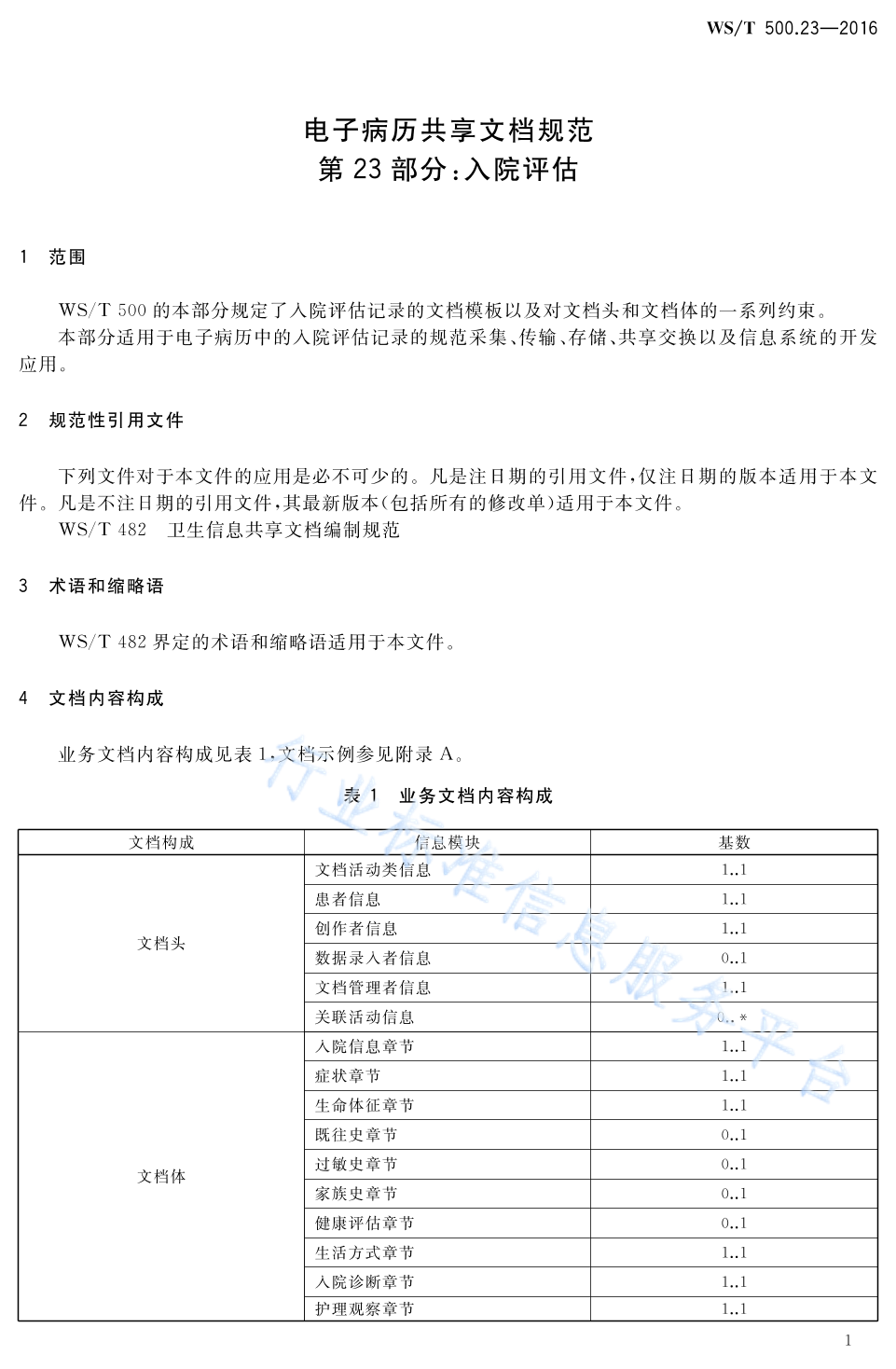 WS/T 500.23-2016 电子病历共享文档规范 第23部分:入院评估