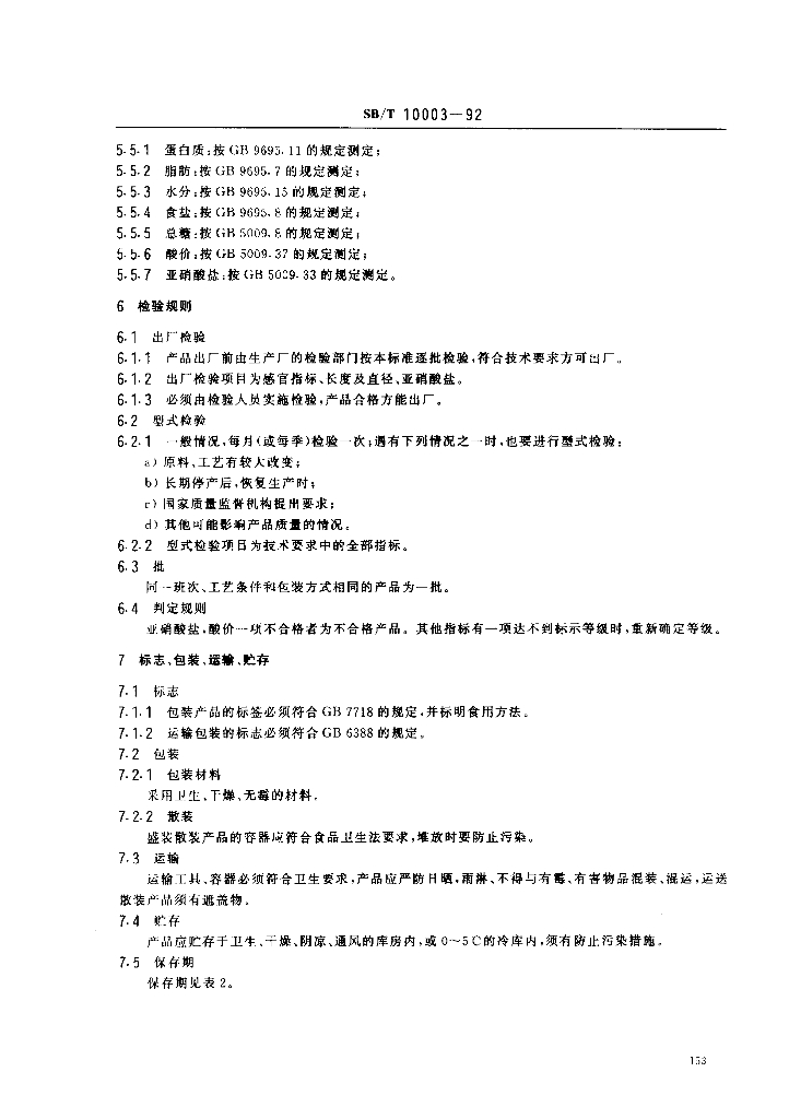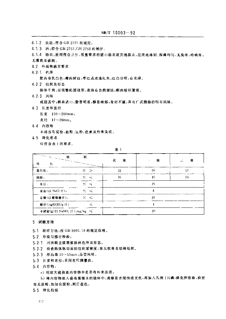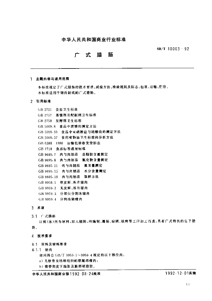 SB/T 10003-1992 广式腊肠