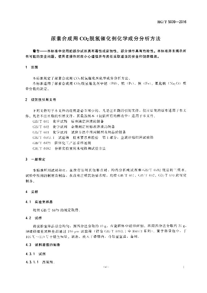 HG/T 5039-2016 尿素合成用 CO2 脱氢催化剂化学成分分析方法