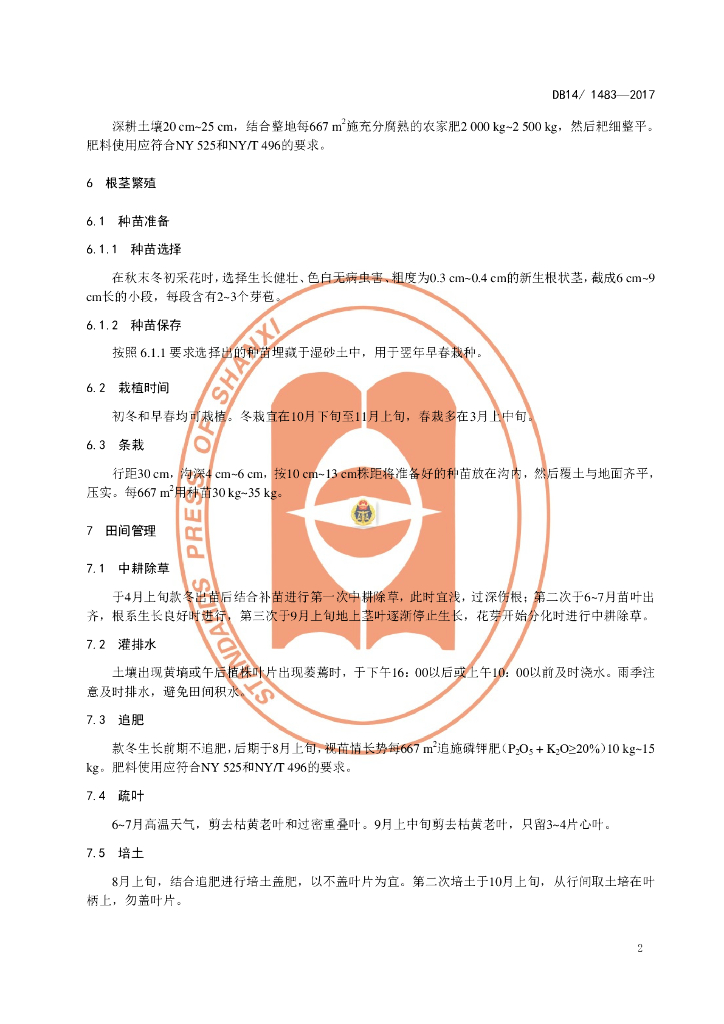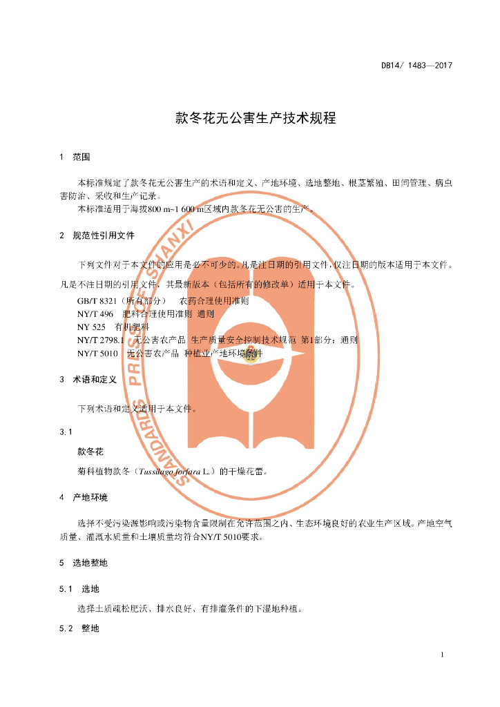 DB14/T 1483-2017 款冬花无公害生产技术规程