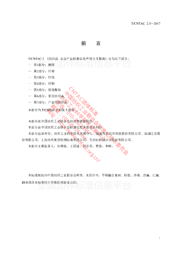 纺织工业科学技术发展中心、福建凤竹纺织科技股份有限公司、海澜之家股份有限公司、上海纺织集团检测标准有限公司、天纺标检测认证股份有限公司